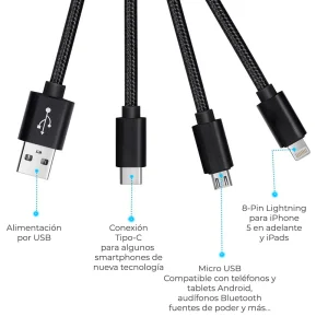 Cable Celular Usb 3 en 1 Micro Usb Tipo C Lightning