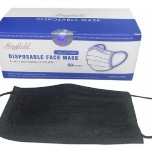 CAJA CUBREBOCAS TRICAPA NEGRO MAYFIELD 50 PIEZAS