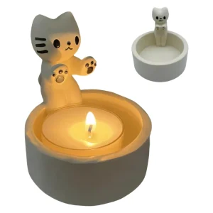Portavela Cerámica Gato Blanco Dibujo Animado