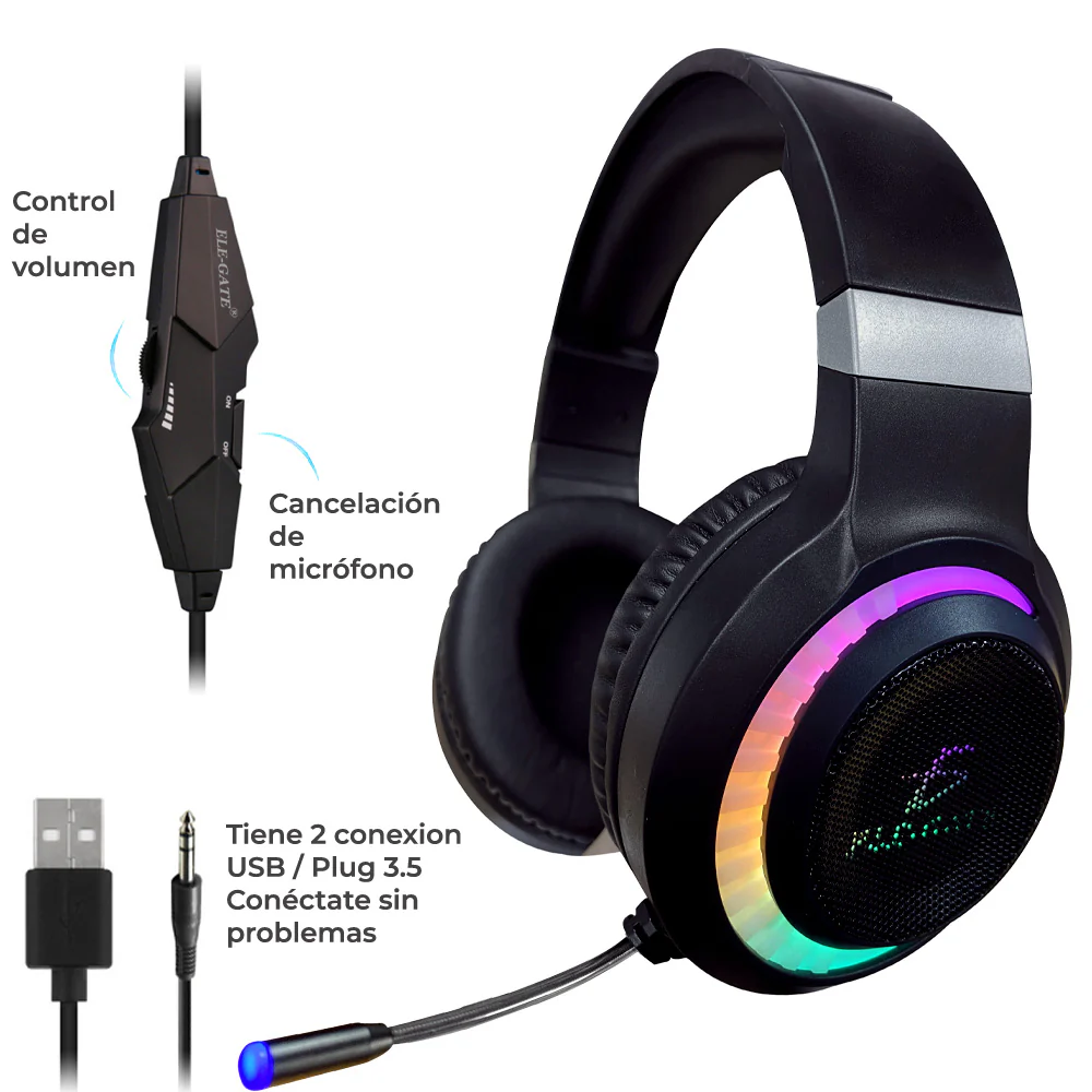 Diadema Gamer Rgb Led Colores Audifonos Ps4 Xbox Pc