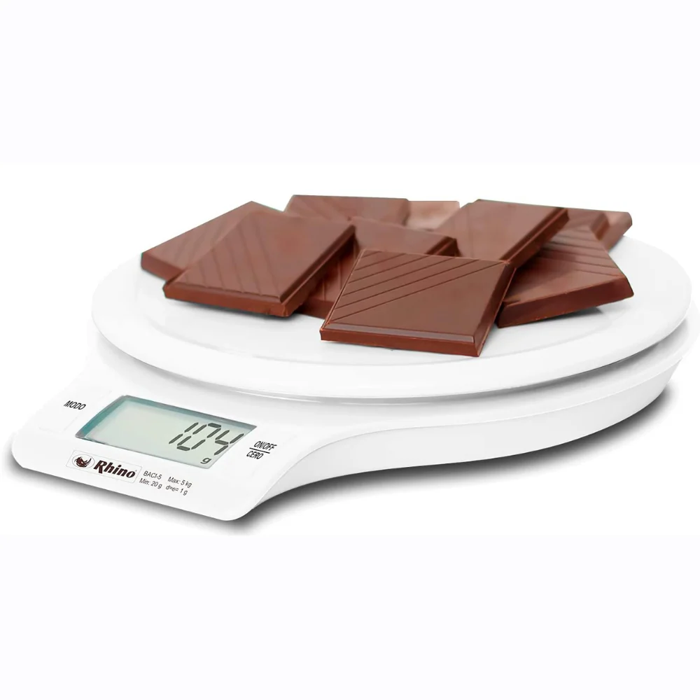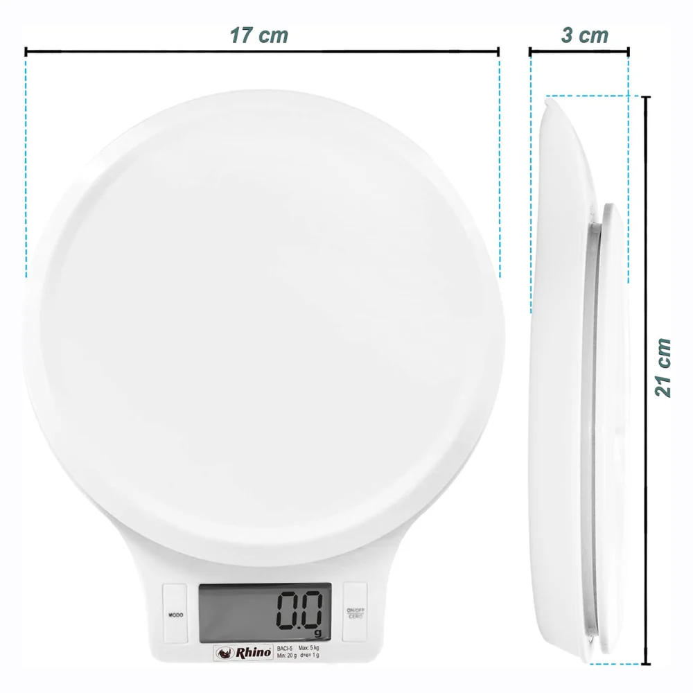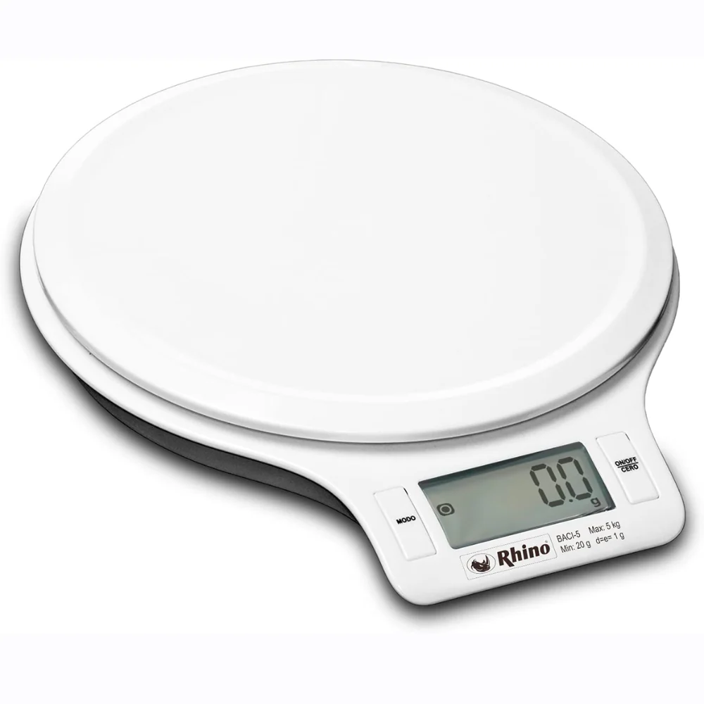 Báscula digital de cocina con capacidad de 5 kgs y precisión de 1 g.