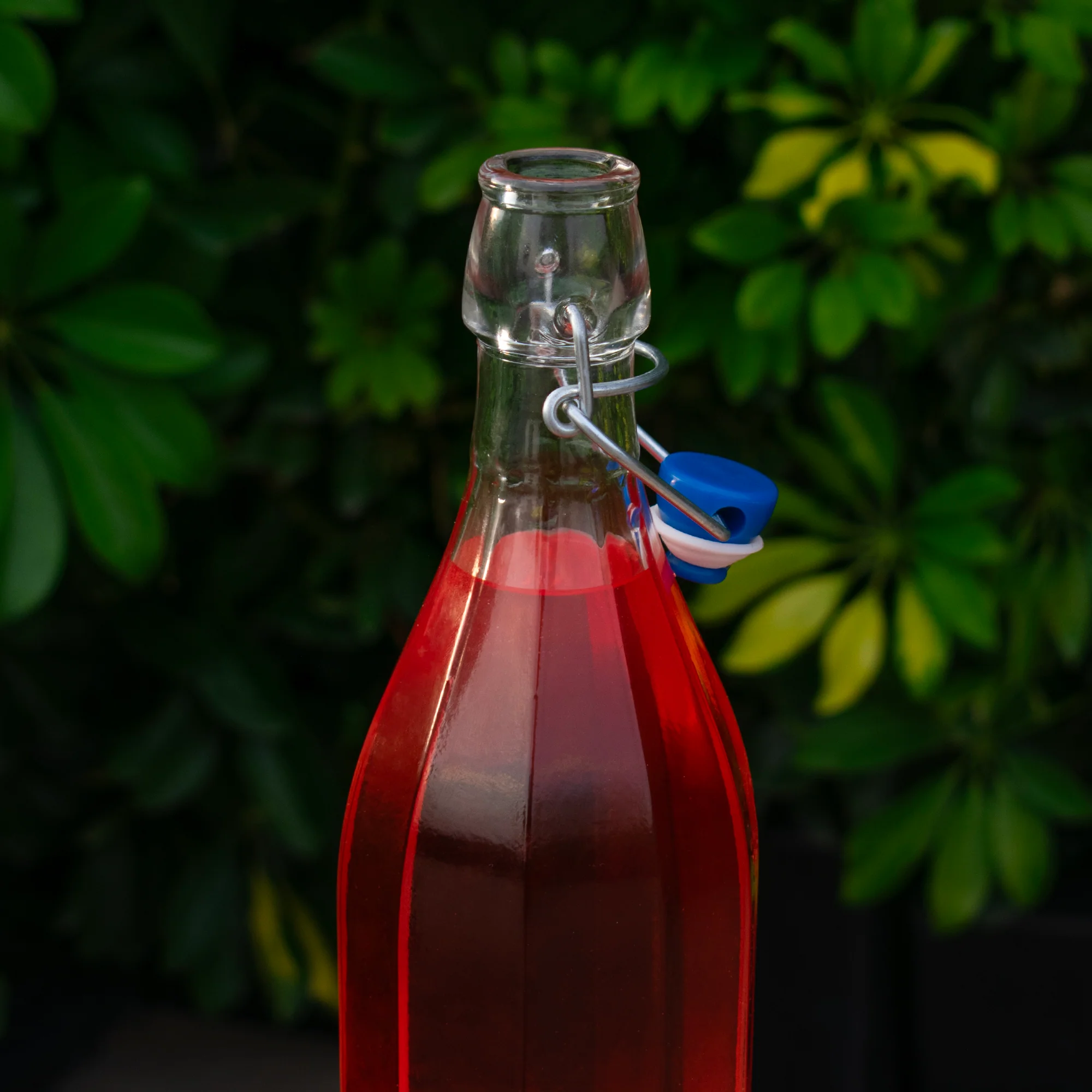 Contenido: 1 botella de vidrio con tapón hermético Bormioli Rocco (1 L)