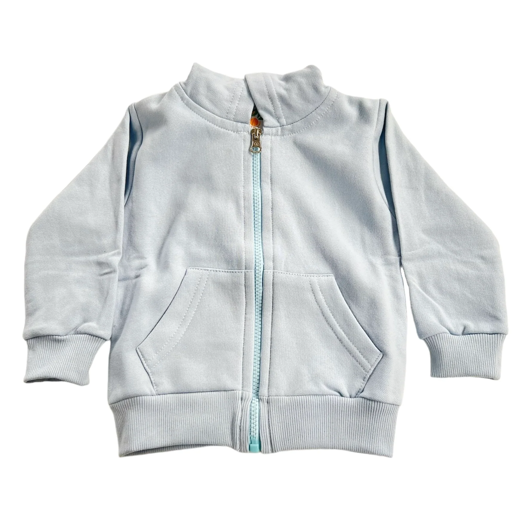 Campera de frisa con capucha y cierre lisa.
