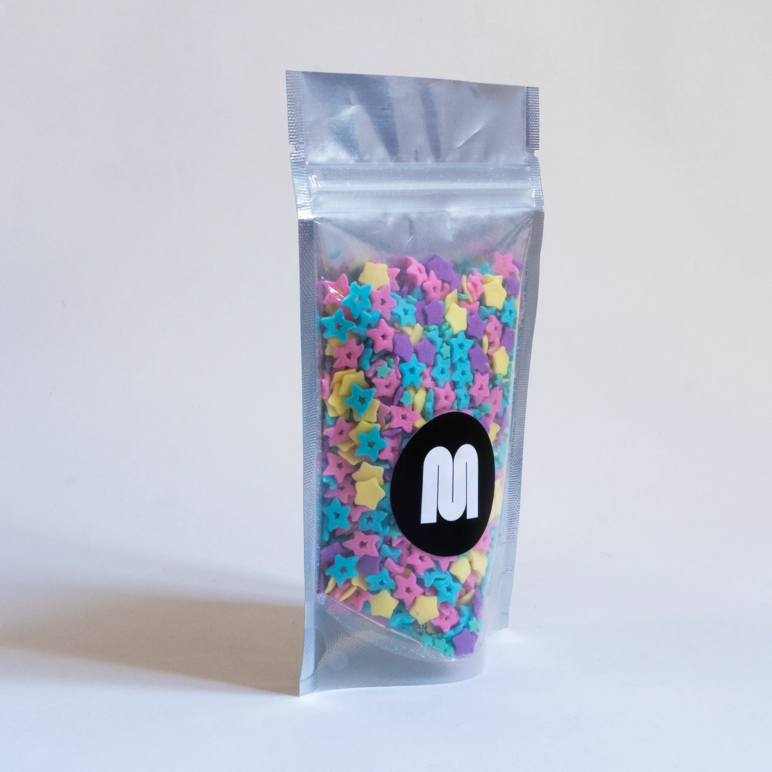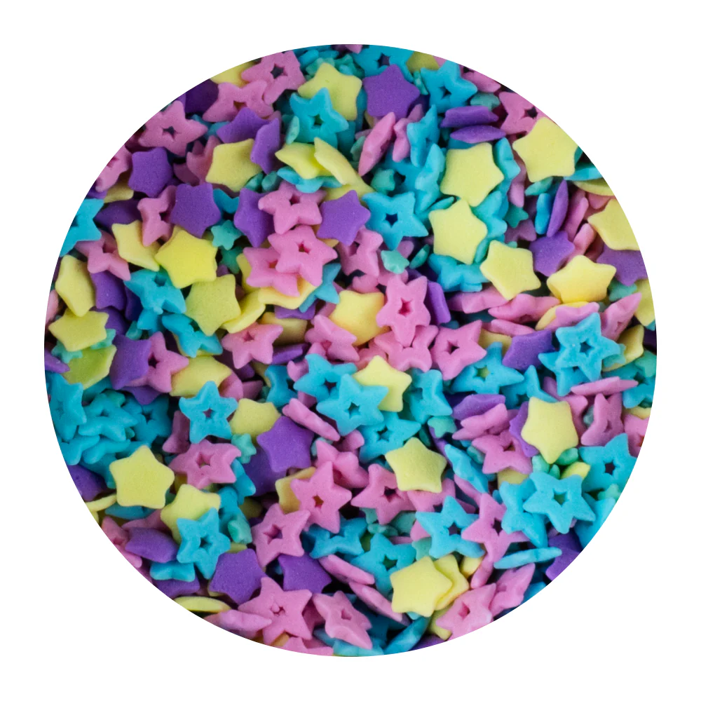 Dale un toque celestial a tus postres con nuestro confeti comestible estrellas frías.