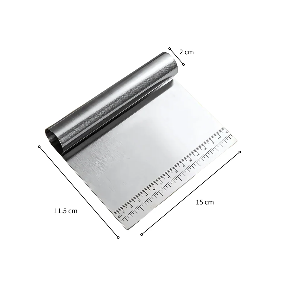 Espátula/Cortador para masa de acero inoxidable de alta calidad perfecto para raspar, cortar y picar lo que lo vuelve una herramienta practica al momento de hornear pasteles.