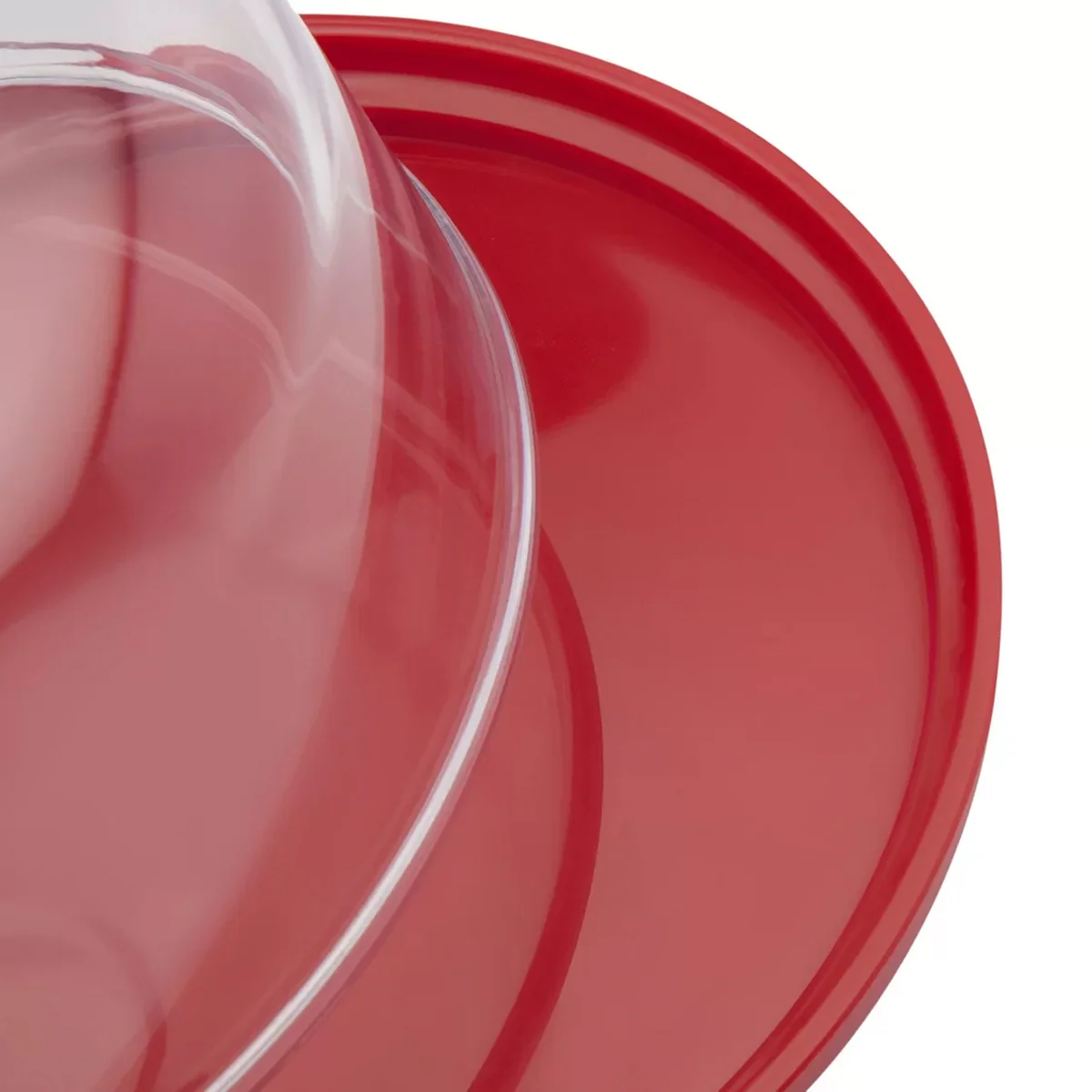 - Domo de AcrÃlico Transparente: Ofrece una visión clara de lo que hay dentro, protegiendo tus alimentos de contaminantes y manteniéndolos frescos. Es resistente y fácil de limpiar, garantizando que se vea impecable en todo momento.