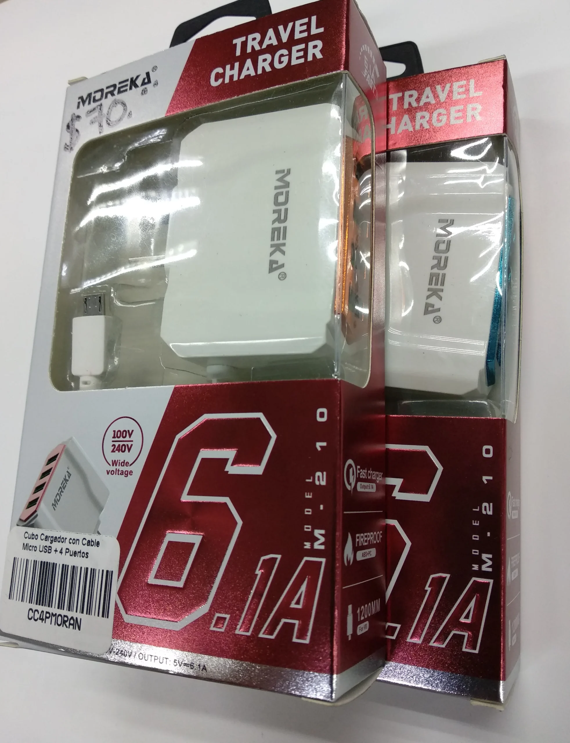 Cubo Cargador de Carga Rápida con Cable Micro USB de 4 Puertos.