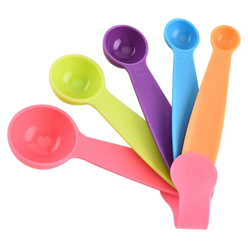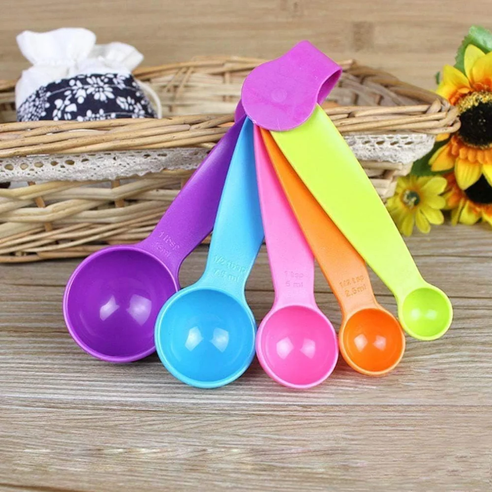Con pequeño anillo que ayuda a mantener las cucharas juntas para colgarlas y guardarlas fácilmente.