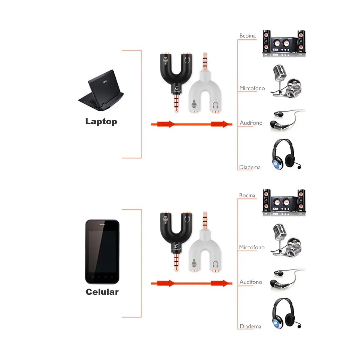 ideal para headsets de 2 entradas y que puedan ser usados en dispositivos que solo usan 1