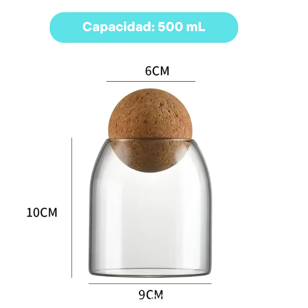 Los frascos de vidrio transparente, la tapa hermética de madera mantiene la humedad alejada en el interior y facilita el almacenamiento.