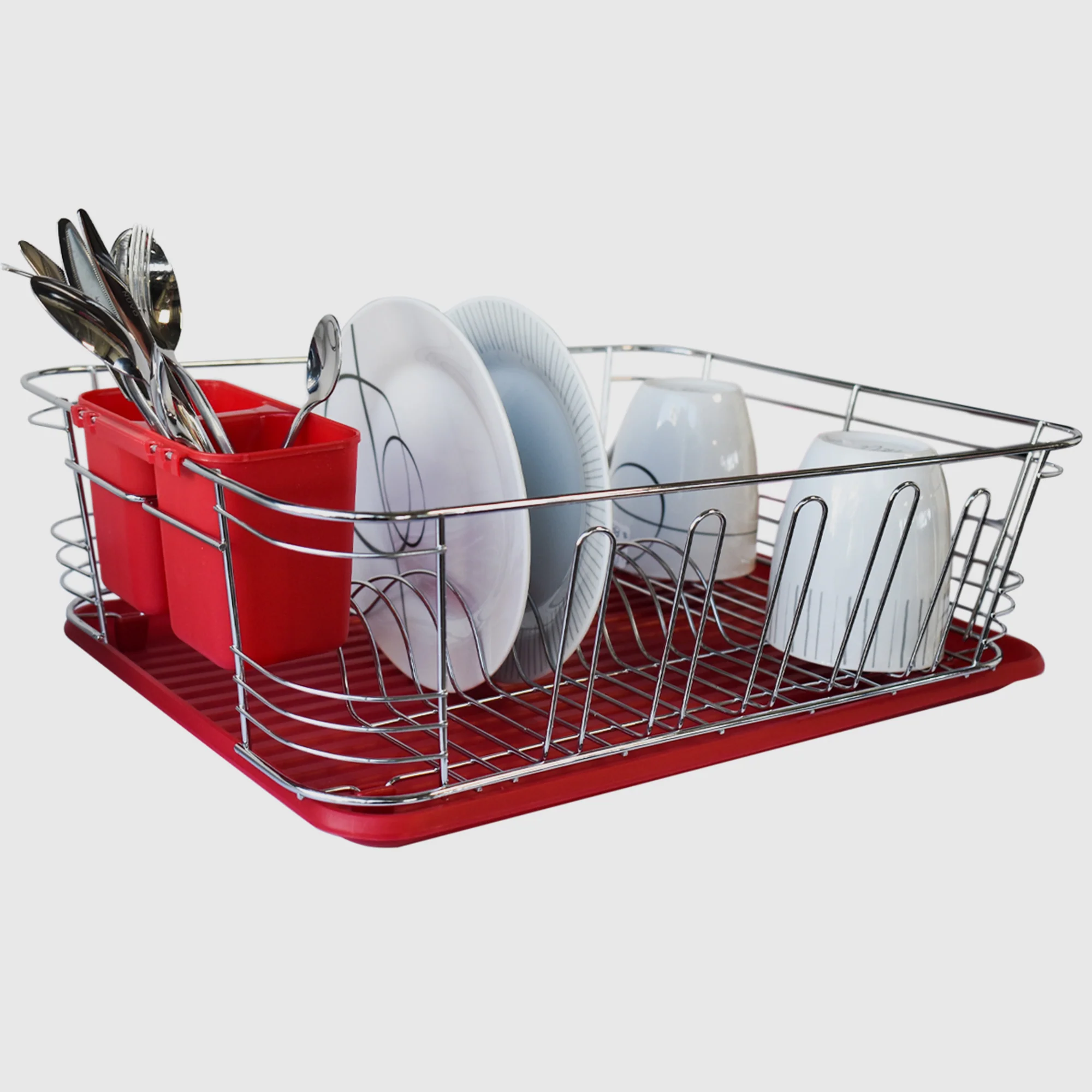 - ¡Te encantará este escurridor de acero con charola de plástico! Después de lavar tus platos, colócalos en este lindo y práctico escurridor con charola, el cual tiene una base resistente y amplia para acumular el agua que dejan tus trastes limpios