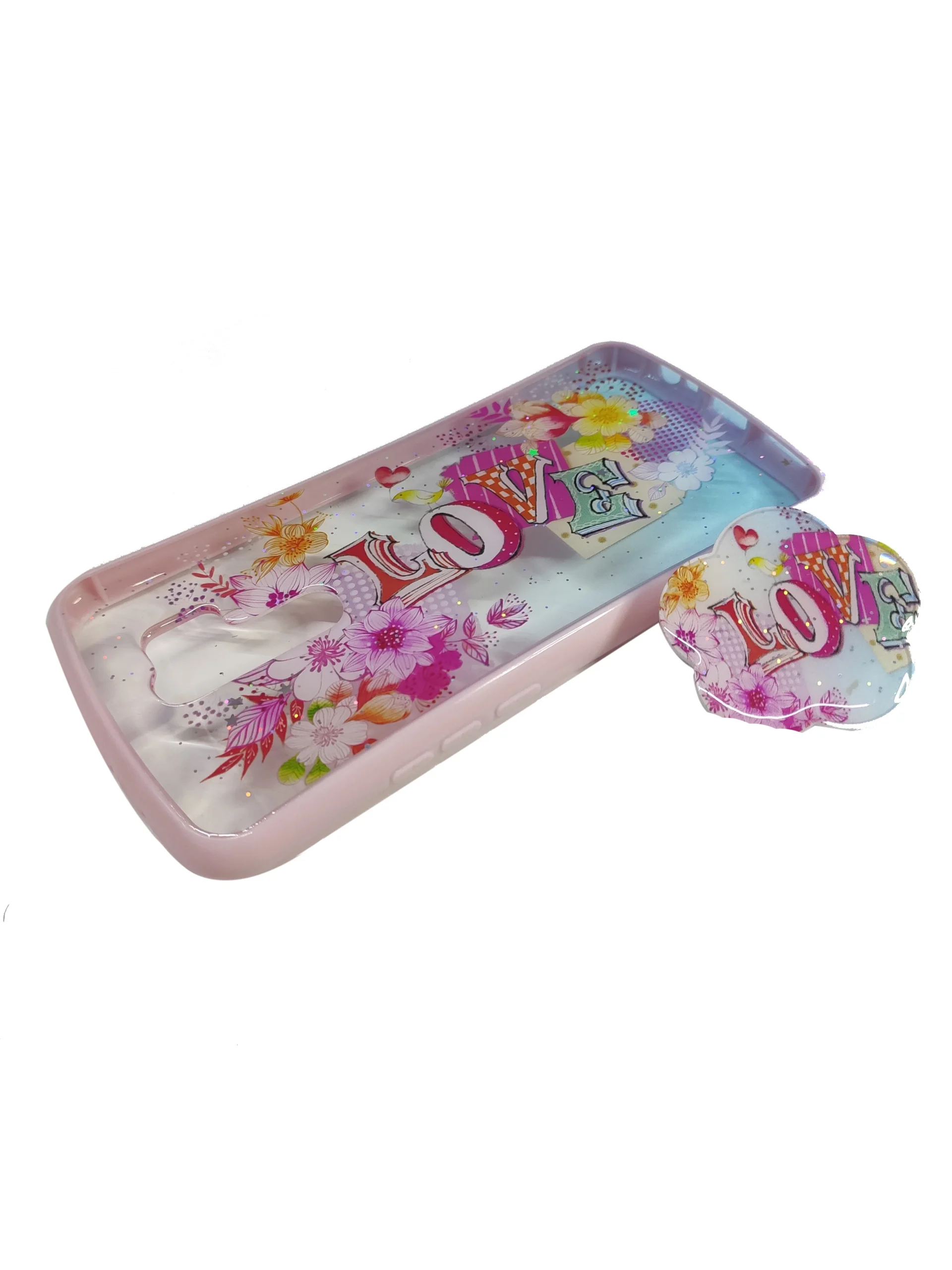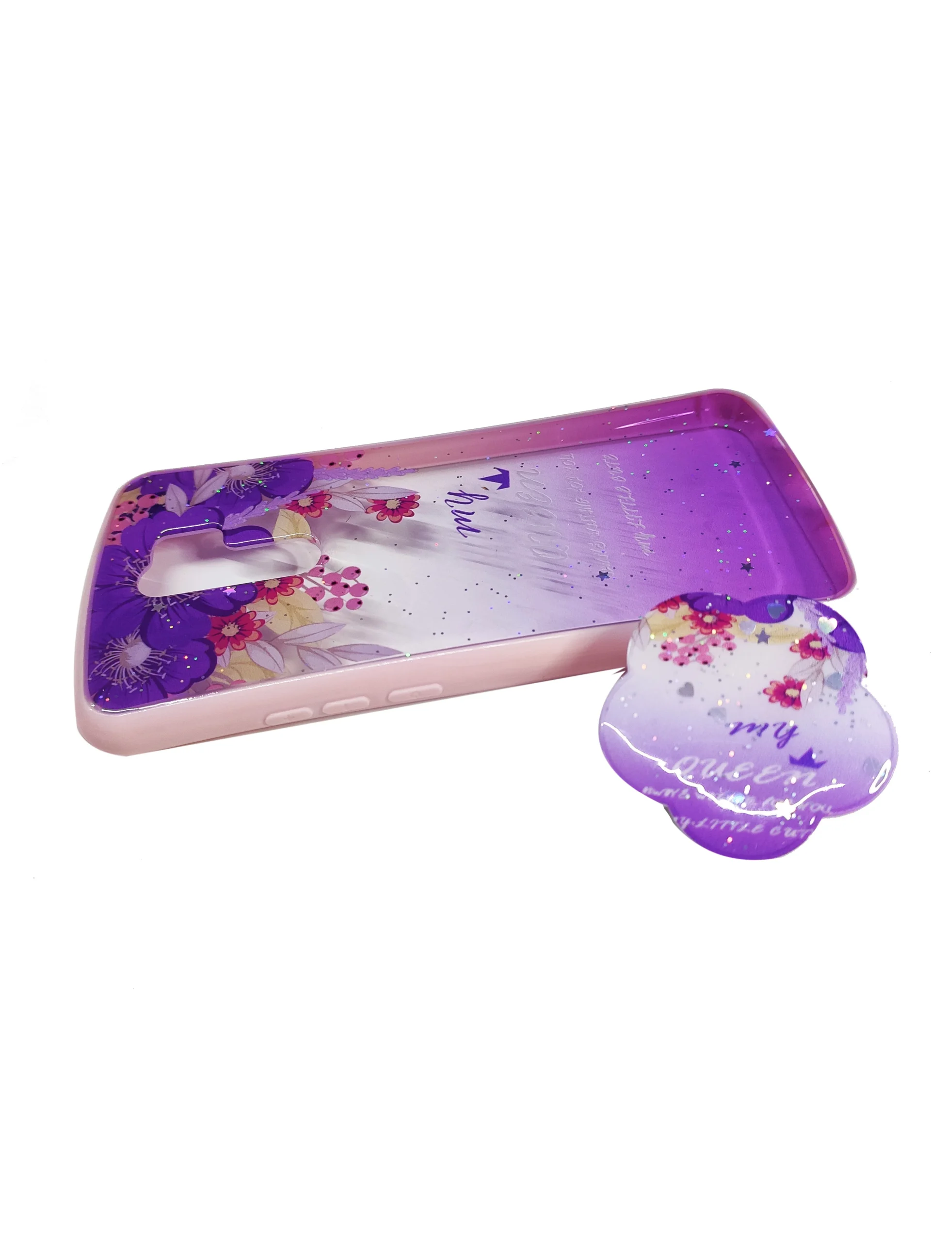 Hermosa Funda Transparente Con Bordes de Color Y Glitter, luce el diseño de tu equipo con esta funda, incluye un pop Socket