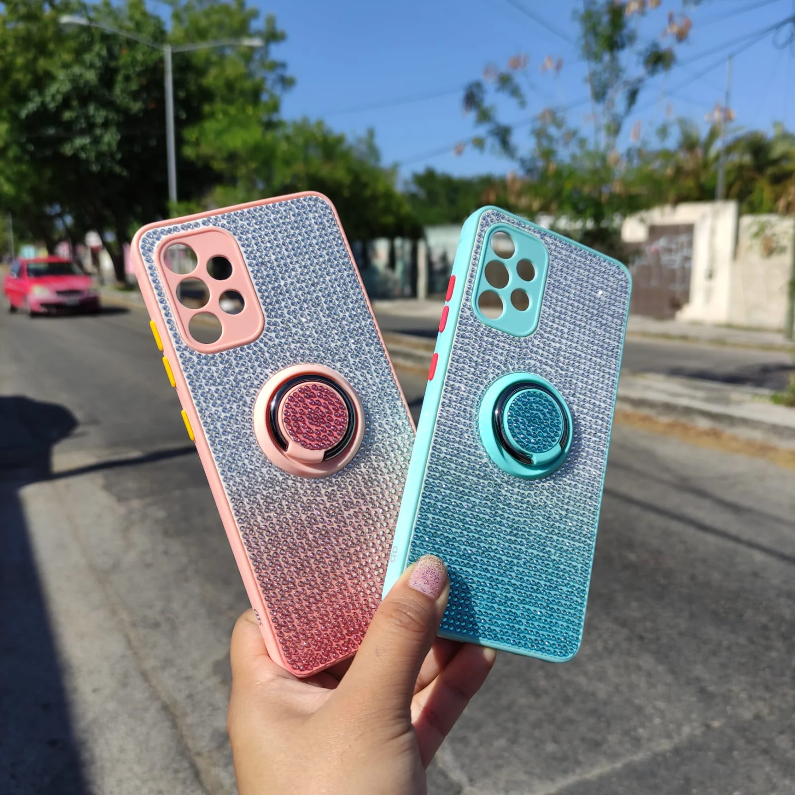 FUNDA DE DIAMANTE CON ANILLO GIRATORIO Y MAGNETICO.