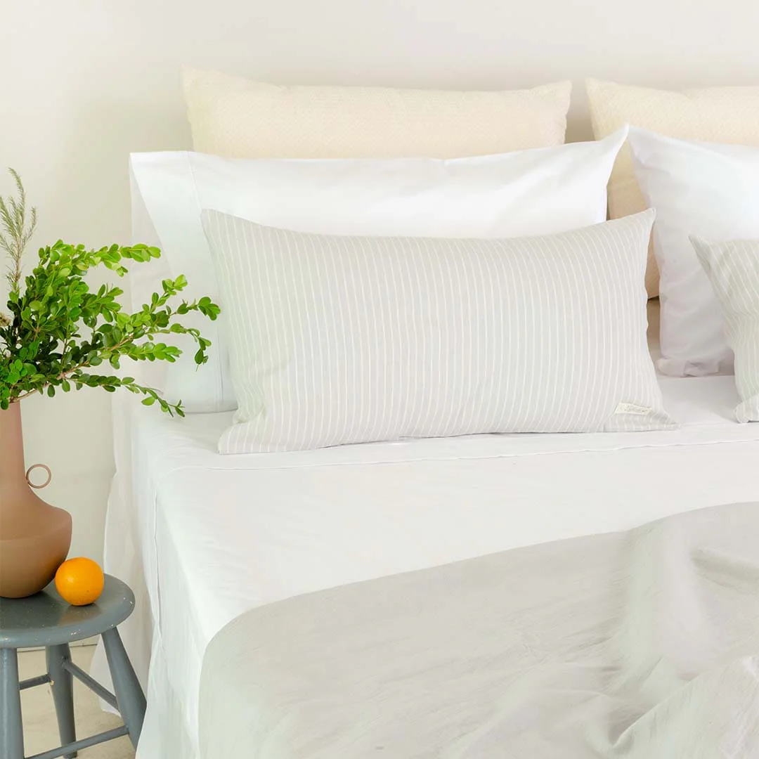 Funda para almohadón. Tusor rayado 100% algodón.