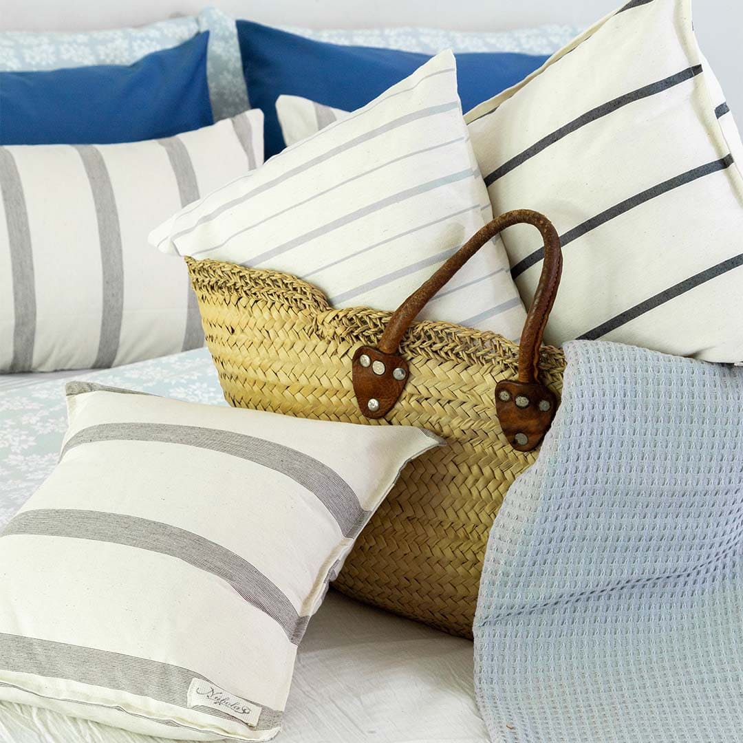 Funda para almohadón. Tusor rayado 100% algodón.