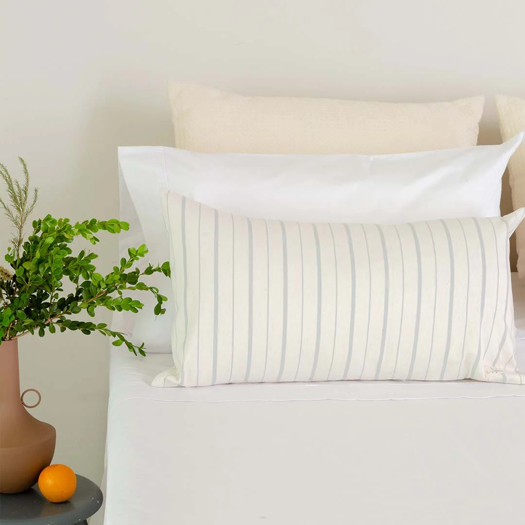 Funda para almohadón. Tusor rayado 100% algodón.