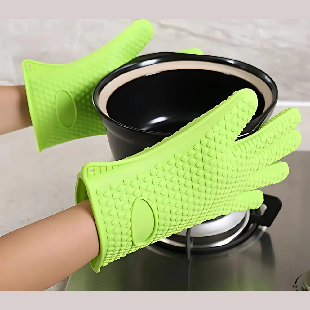 Nuestro guante de cocina de silicón te ayudará a proteger tus manos al sostener cosas calientes o muy frías.