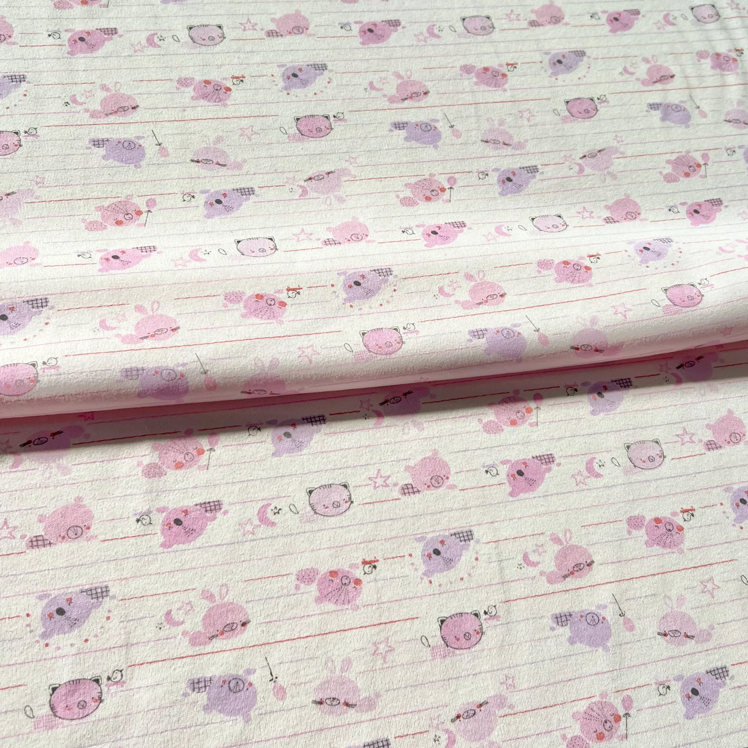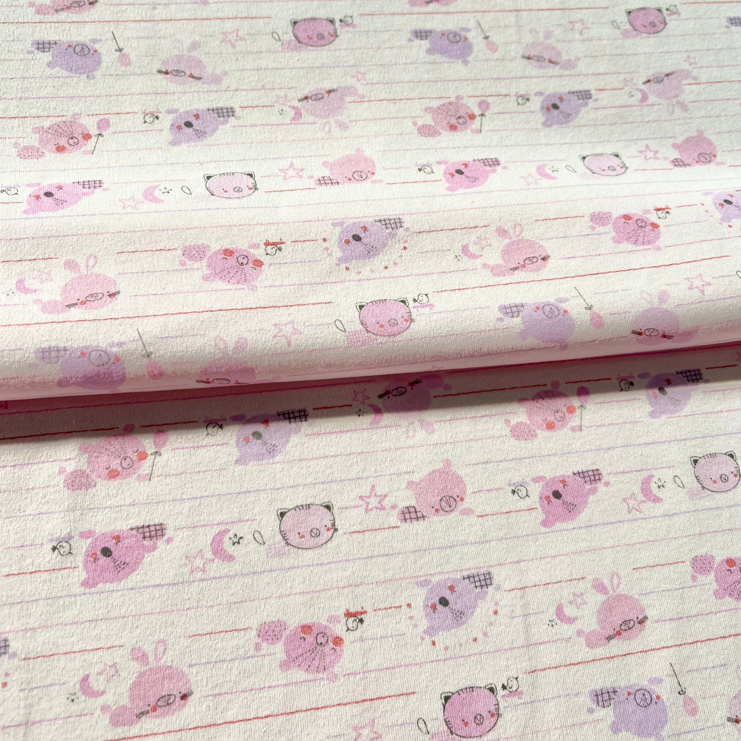 Interlock 30/1 Animalitos Linea Fondo Rosa