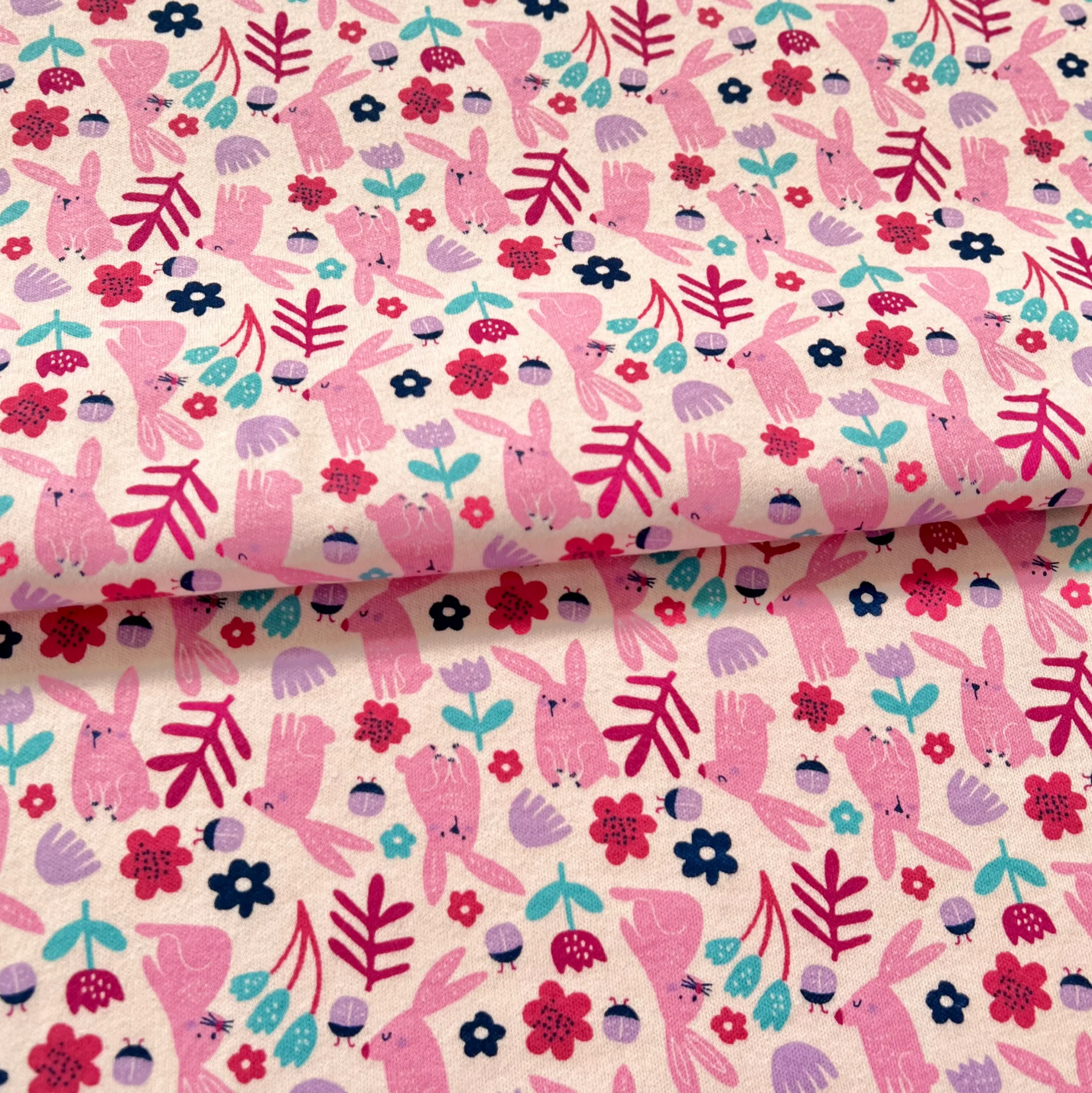 Interlock 30/1 Conejos Fondo Rosa
