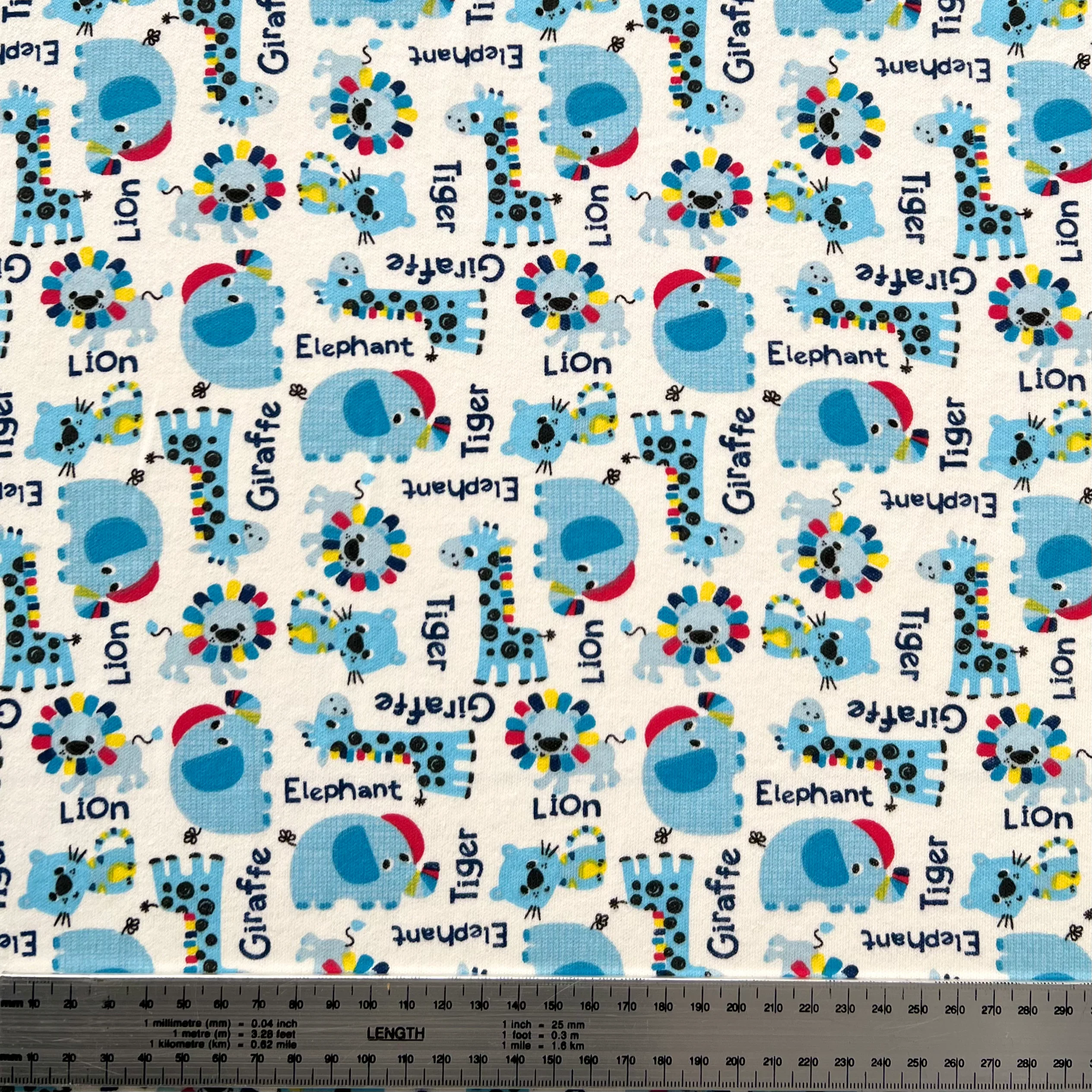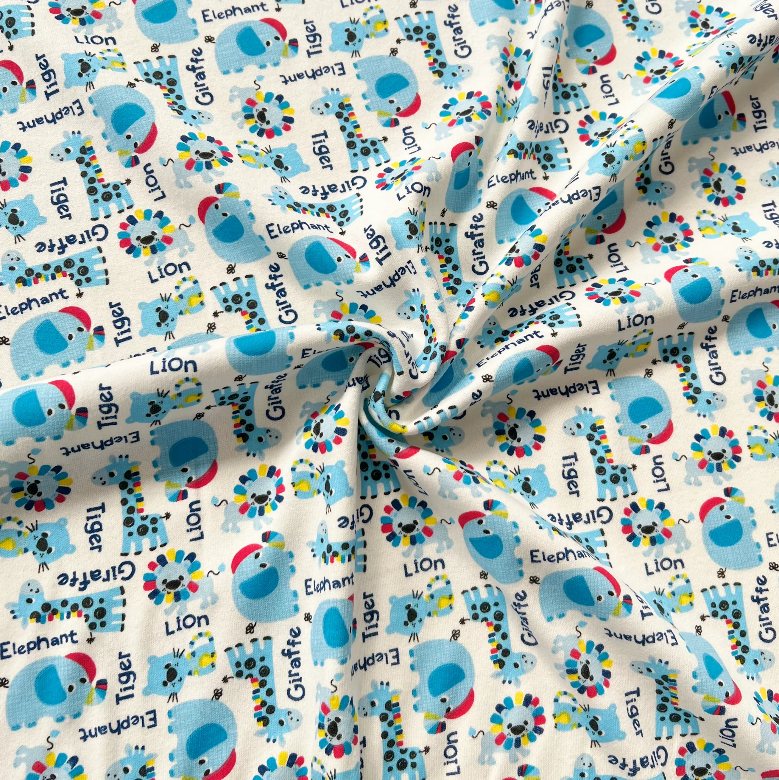 Interlock 30/1 Elefantes y Jirafas Azul