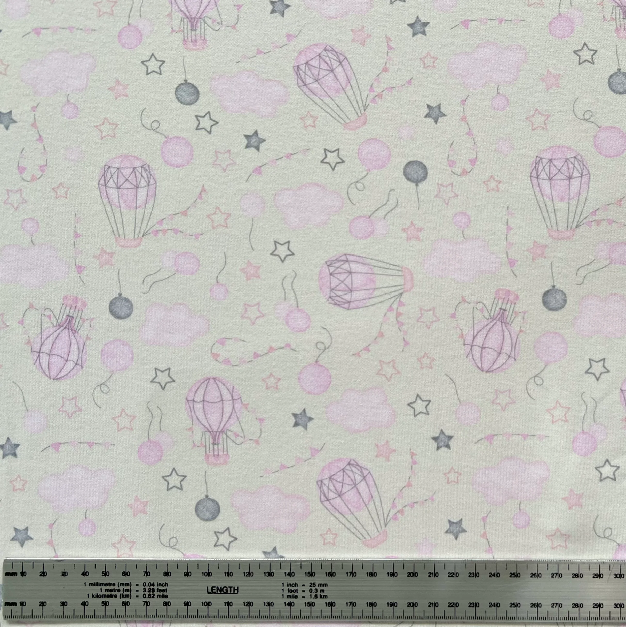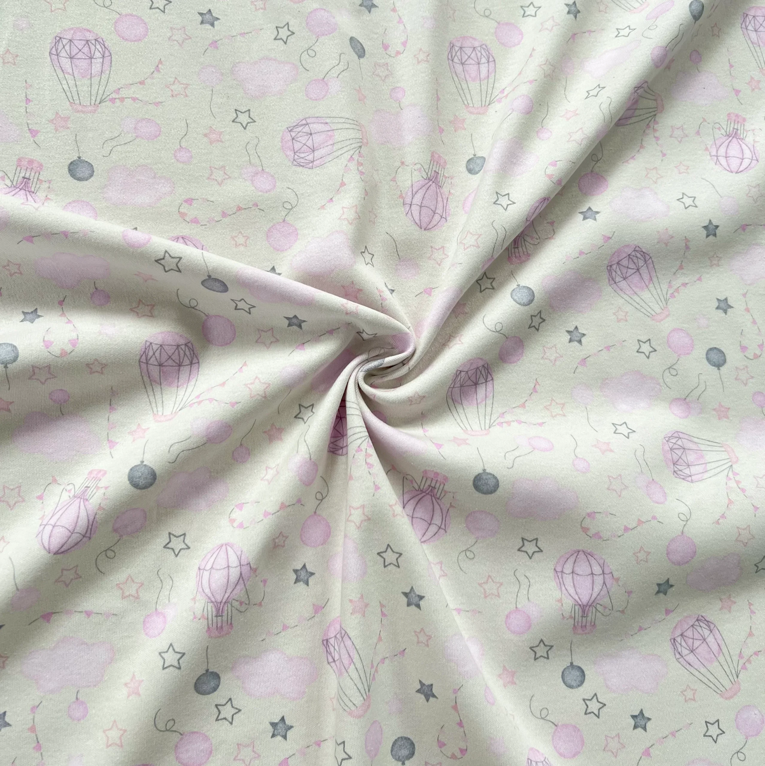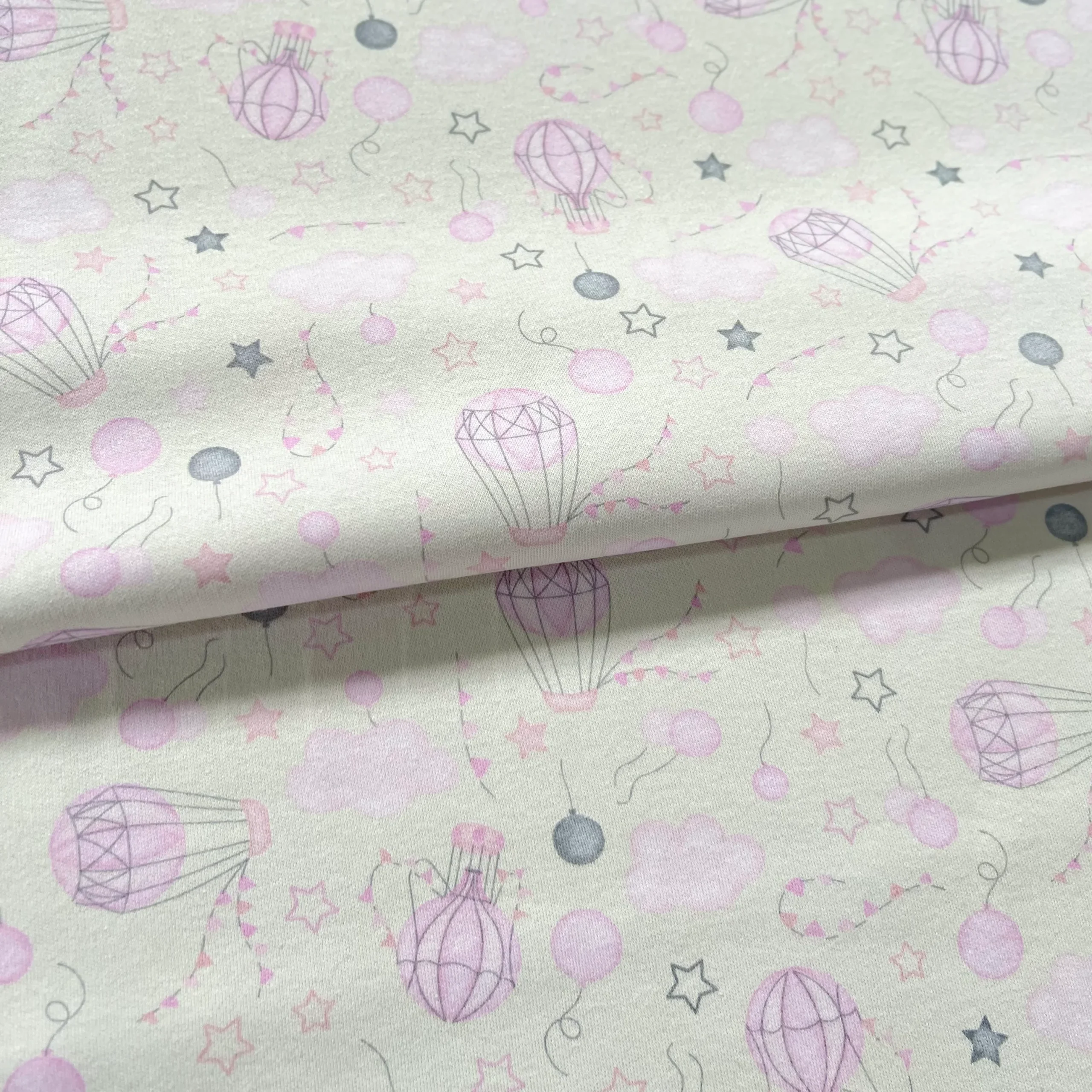 Interlock 30/1 Globos Rosa Fondo Hueso