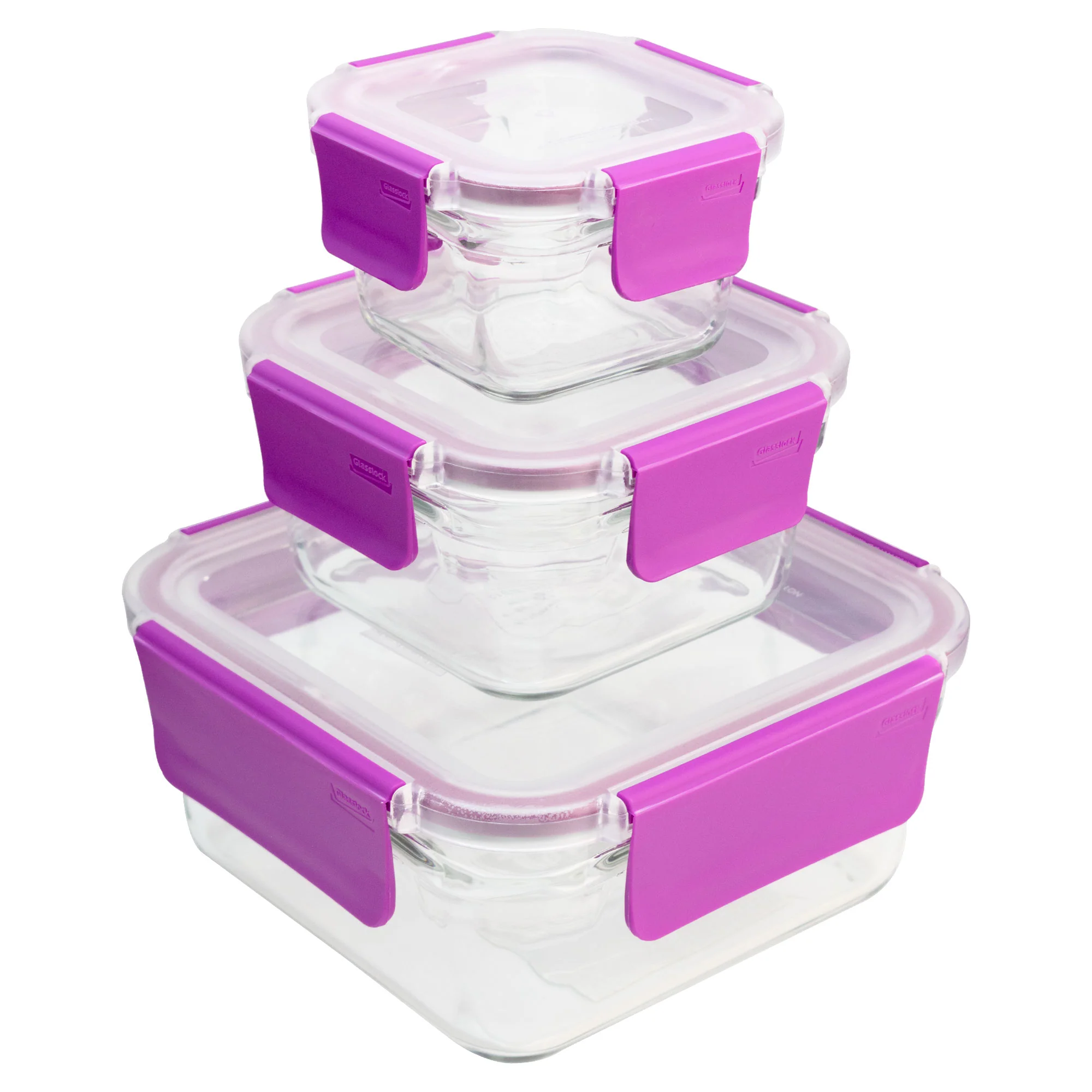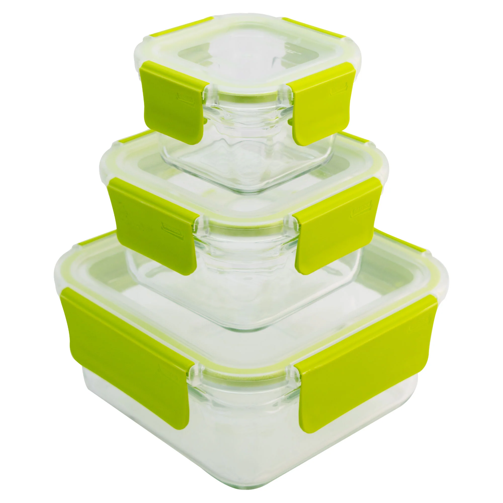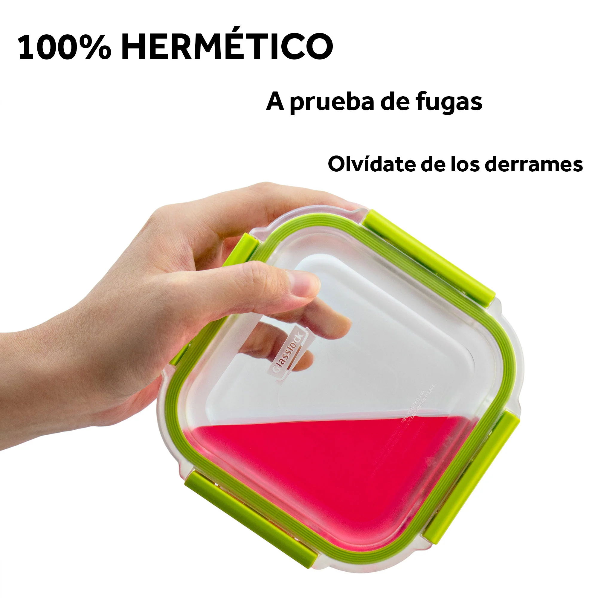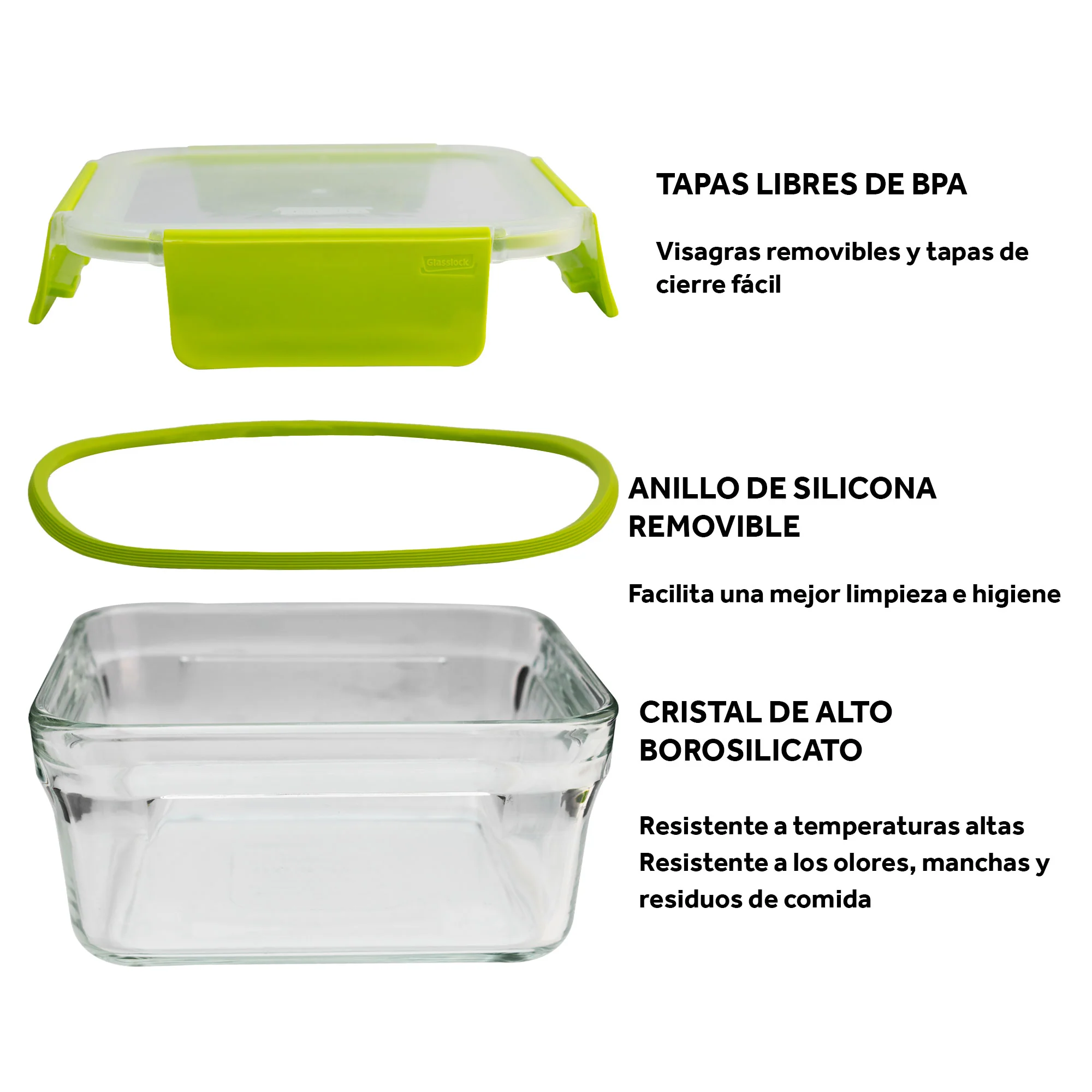 La manera de llevar tu comida o mantener ordenado tu refrigerador con mucha elegancia y estilo, ¡Esta aquí! Con este juego de 3 recipientes de vidrio herméticos rectangulares que puedes elegir entre verde o morado en su tapa, hará que tu día a día será más fácil y tu comida se mantendrá fresca y deliciosa. Estos recipientes vienen con una tapa libre de BPA, en diferentes colores, lo que da seguridad al momento de almacenar alimentos.