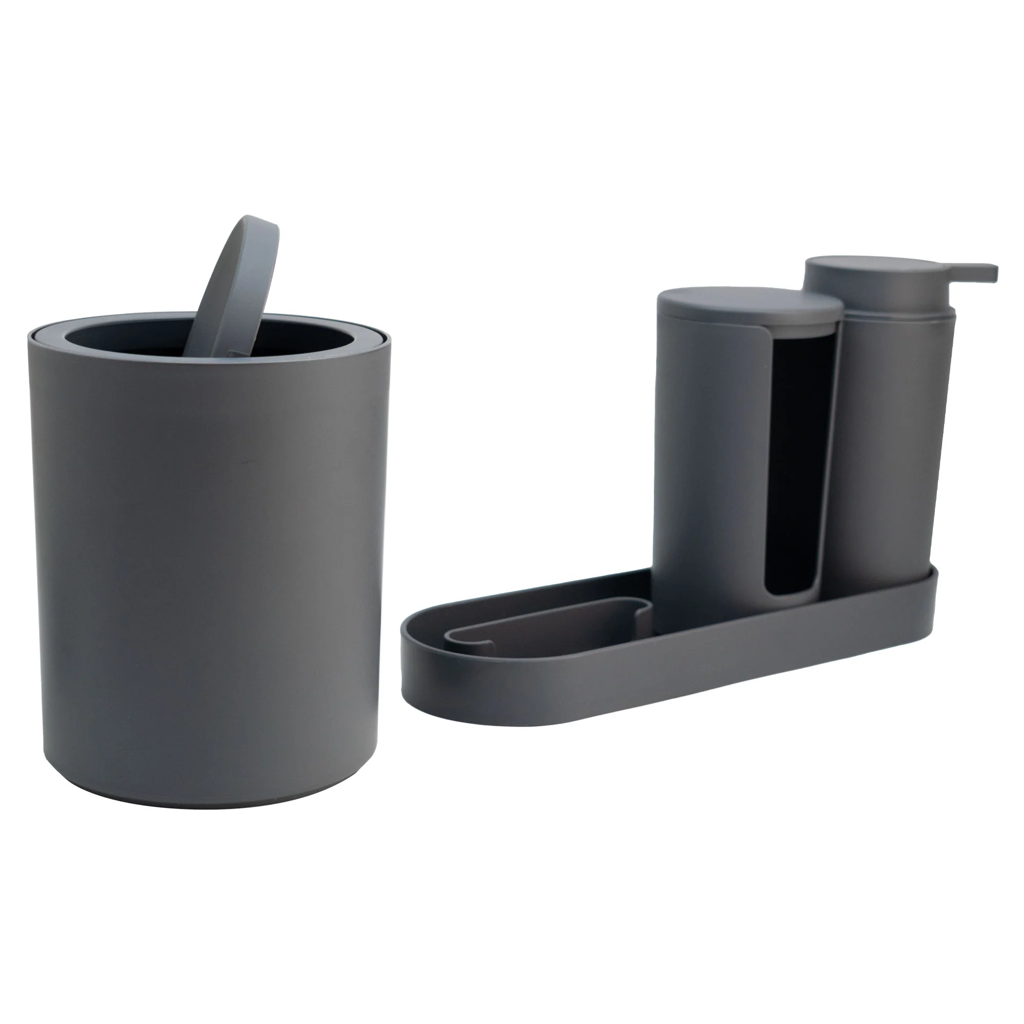 Funcionalidad y estilo en un solo set: Este set de baño ha sido diseñado para ofrecer una combinación perfecta de practicidad y diseño. Con un sofisticado acabado disponible en tres tonos (verde, gris plomo y beige), no solo te ayudará a mantener el orden en tu baño, sino que también aportará un toque moderno y decorativo a tu espacio.