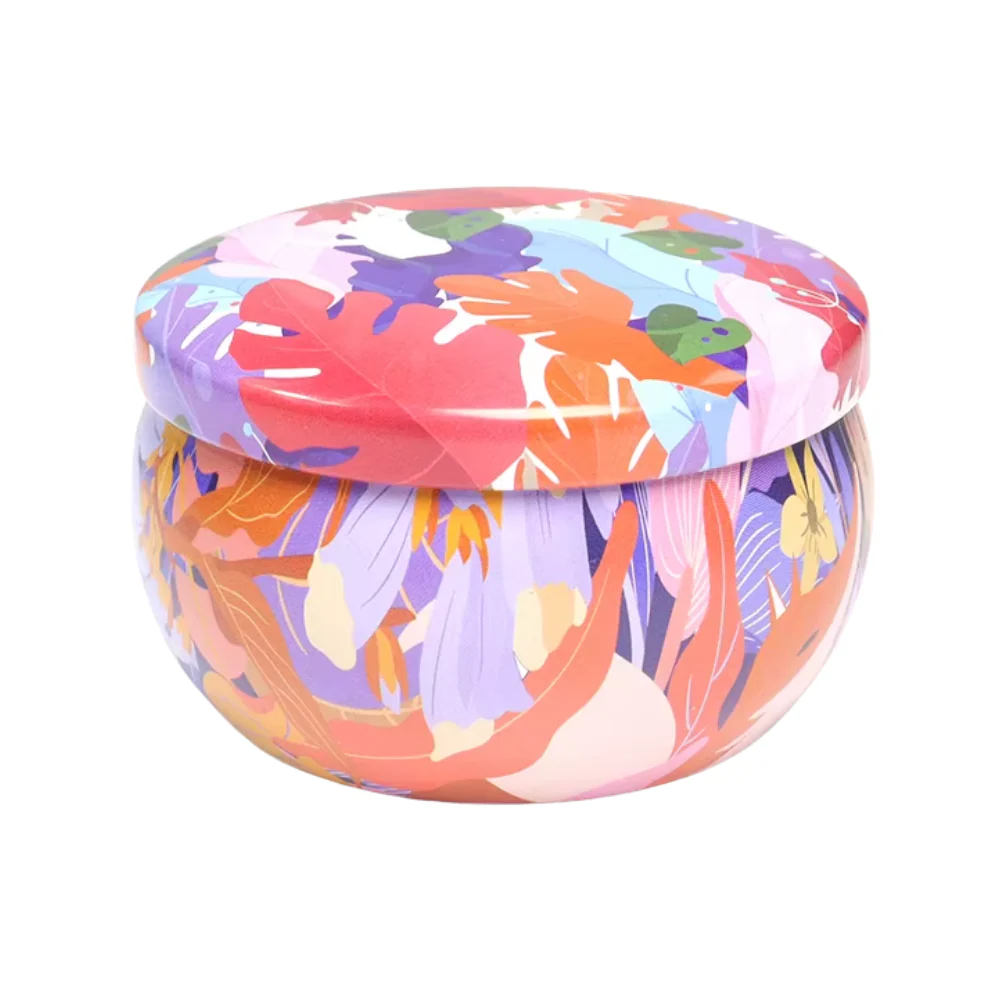 Tropical y colorida lata de aluminio para velas de aromaterapia con capacidad de 4 oz.