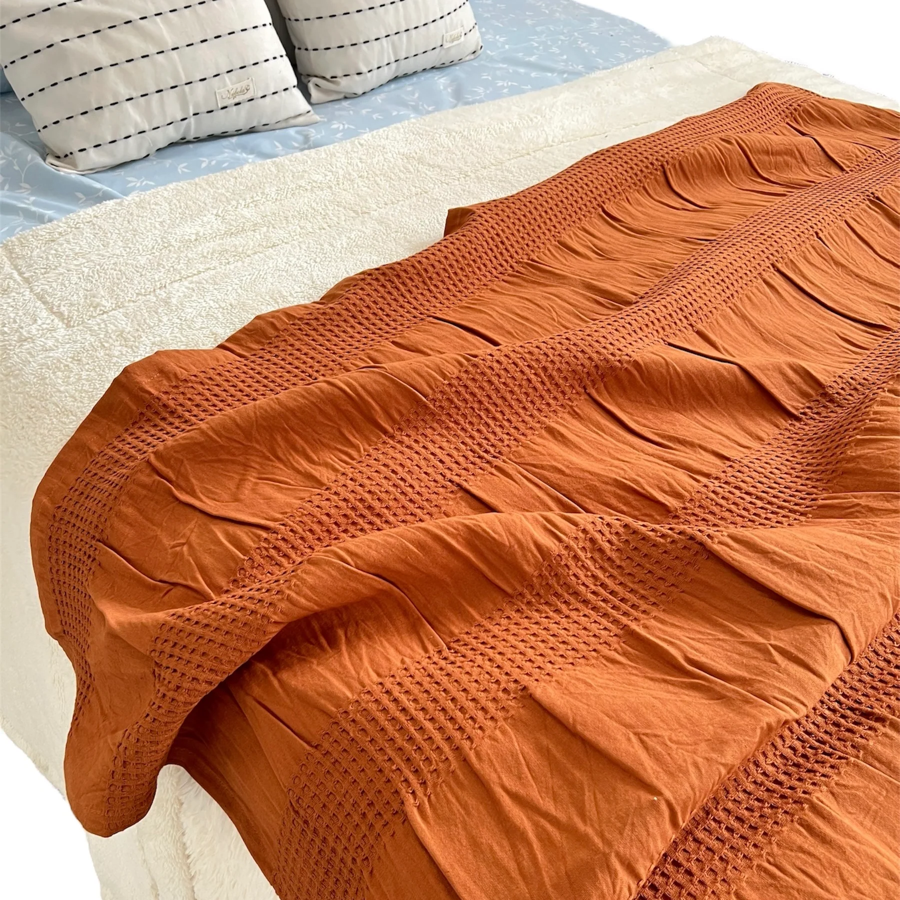 Manta nido de abeja arrugada. Algodón 100%.