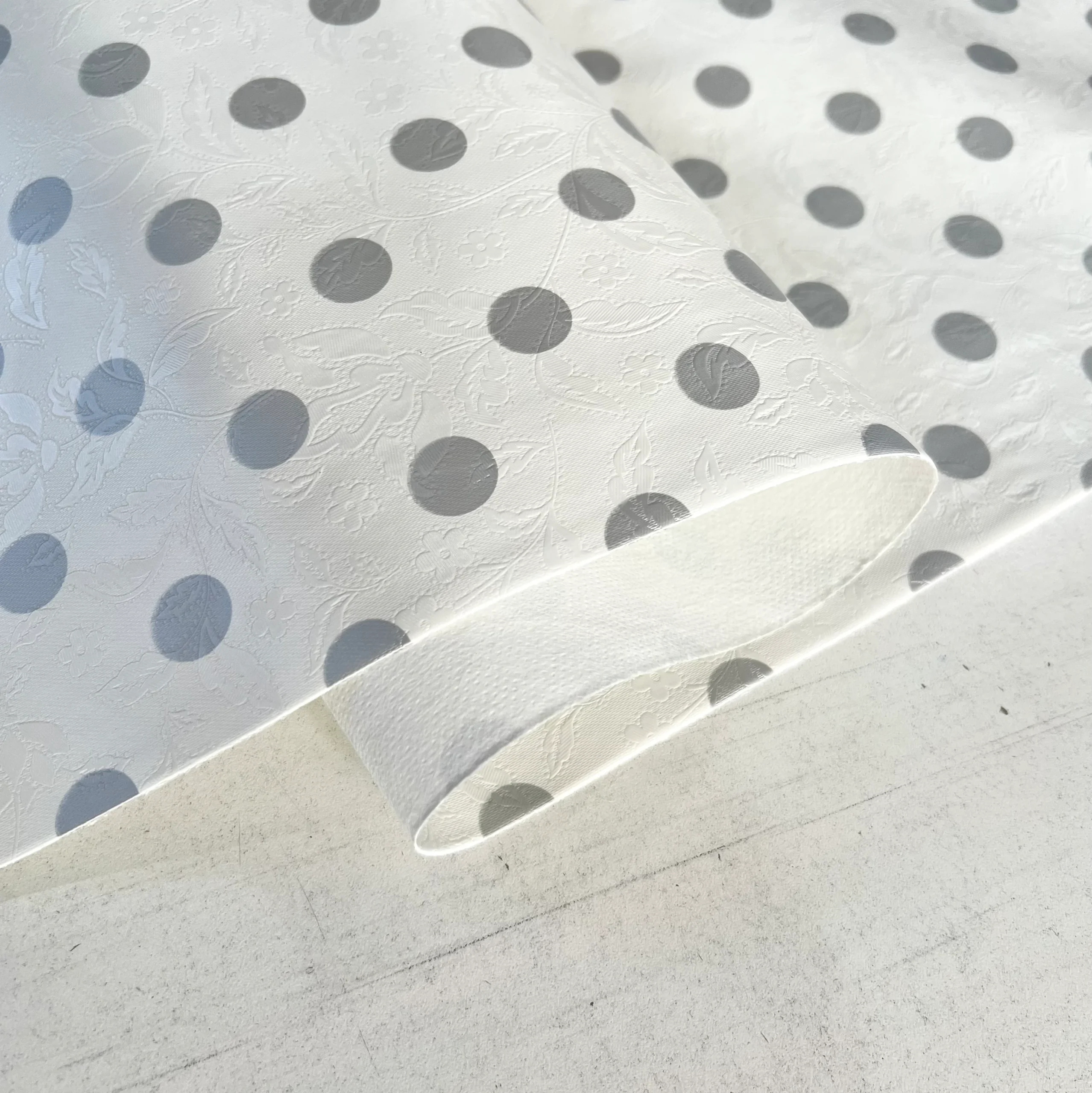 Mantelería premium plástica, estampado con textura y revés tnt (tela no tejida).
