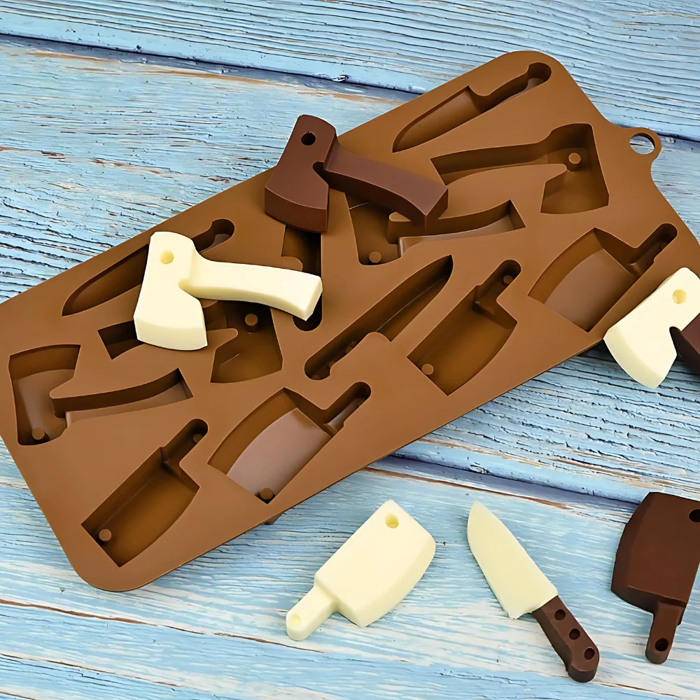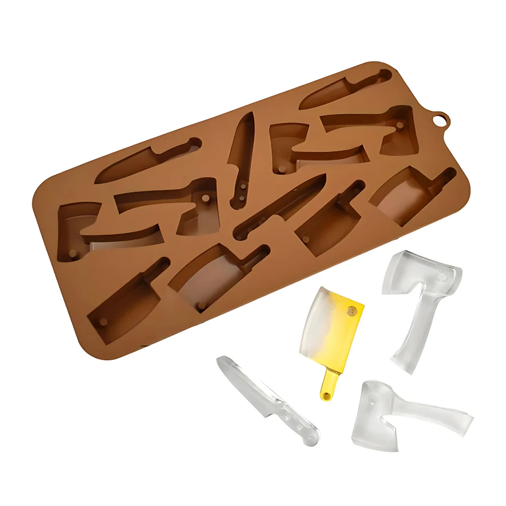 Molde de silicón para repostería de 12 hachas con temática de Halloween, perfecto para decoraciones o pequeñas colaciones para tus fiestas temáticas de Día de Muertos.