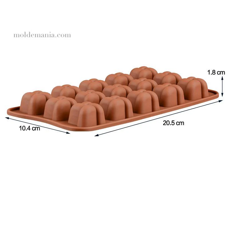 15 Cavidades. Medida molde: 22 x 10.5 cm / Cavidad: 2.5 cm