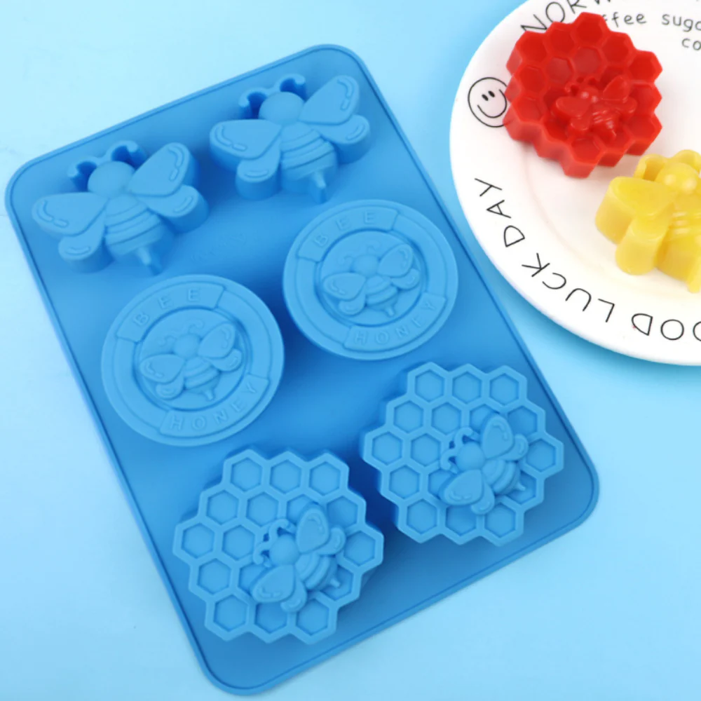 Molde de silicón con 6 cavidades de panales y abejitas ideal para velas, jabones y repostería.