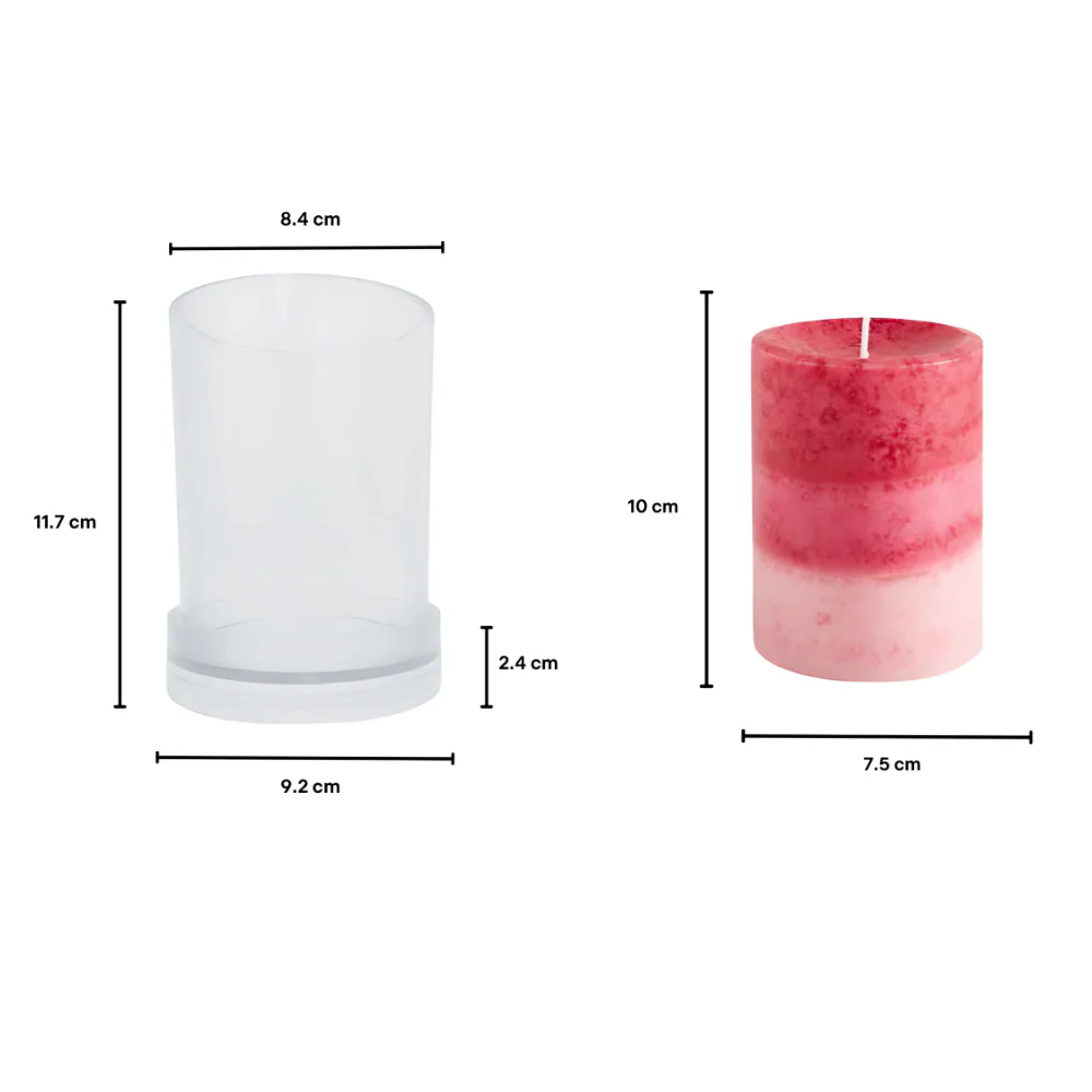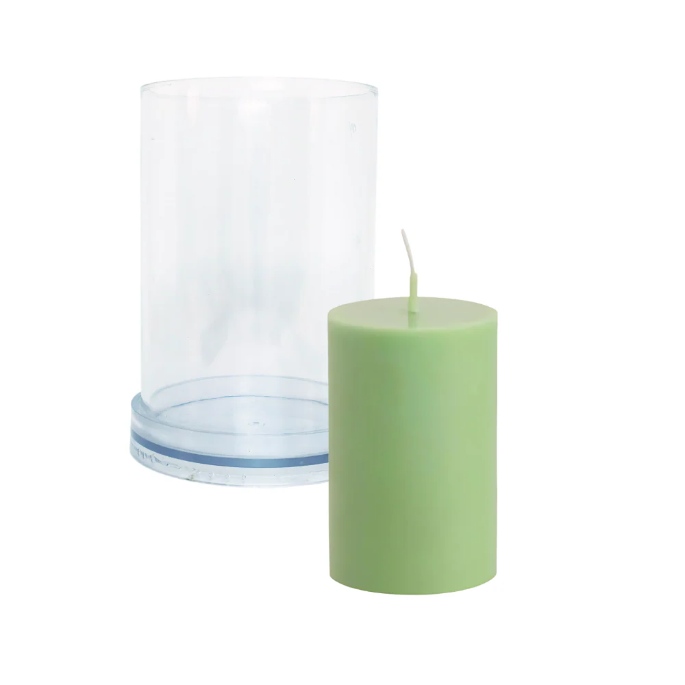 Molde de acrílico para elaborar velas en pilar chico con acabado liso.