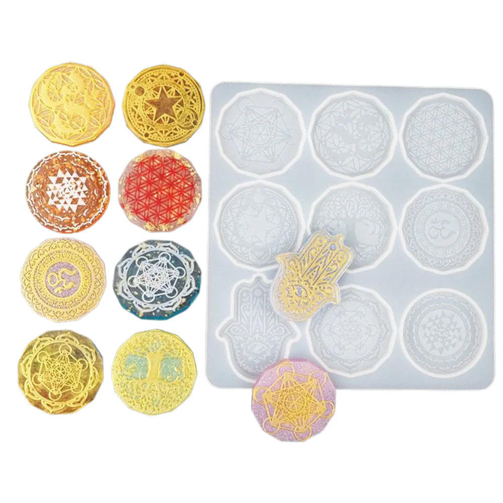 Molde para resina de chakras, árbol de la vida y mano de Fátima.