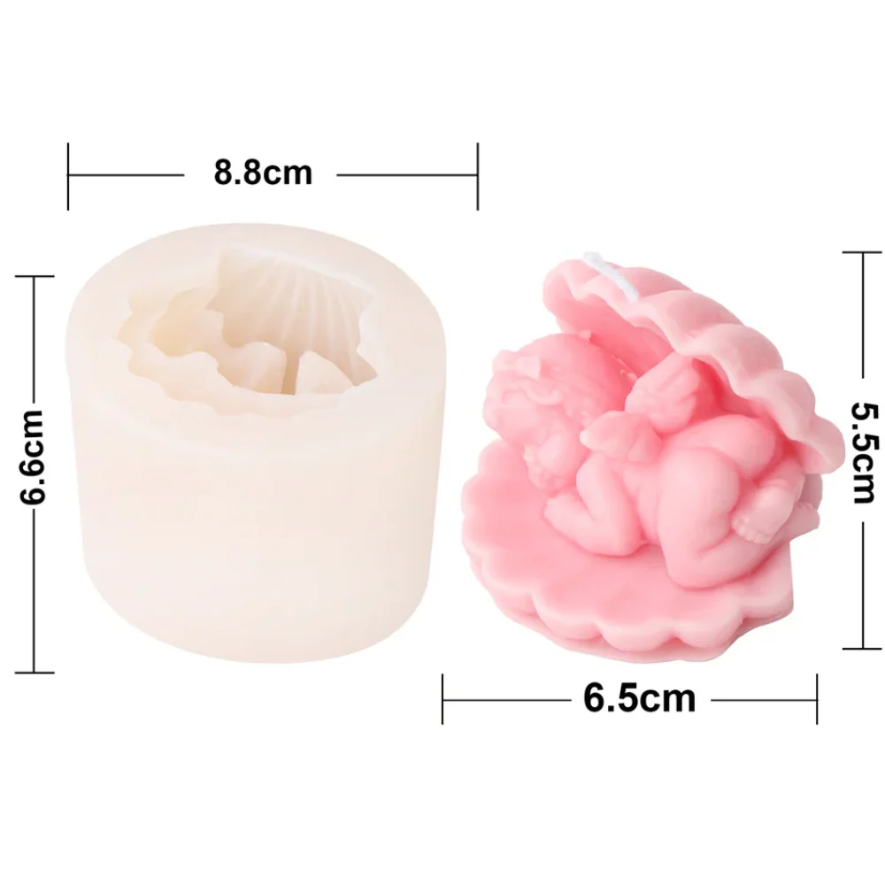 Molde de silicona ideal para elaborar velas, resina, jabonería, repostería y mucho más en forma de concha con un ángel dentro.