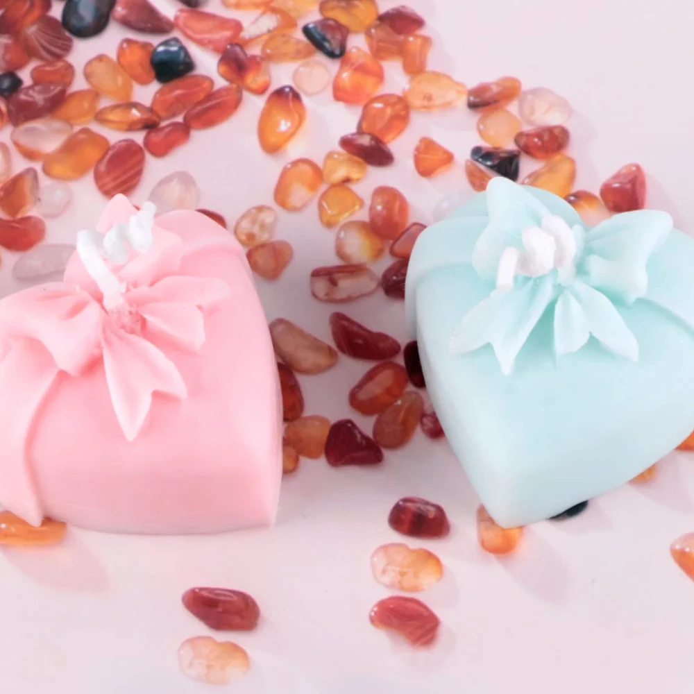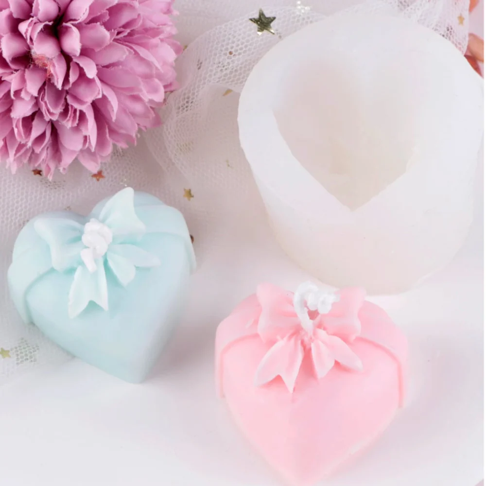 Romántico y dulce molde de corazón con moño, ideal para un recuerdo en bodas.