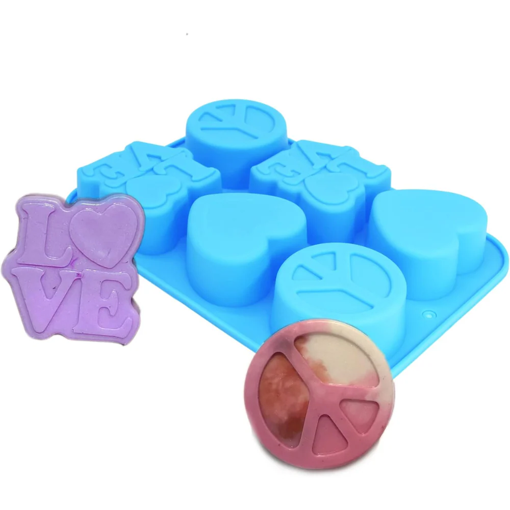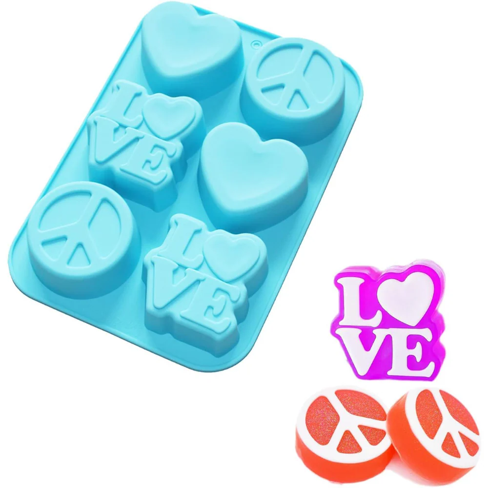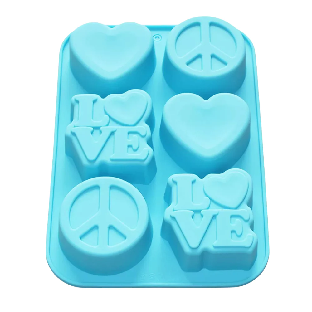 Molde Corazón Love Peace 6 Cavidades – Molde de Silicona para Repostería y Dulces