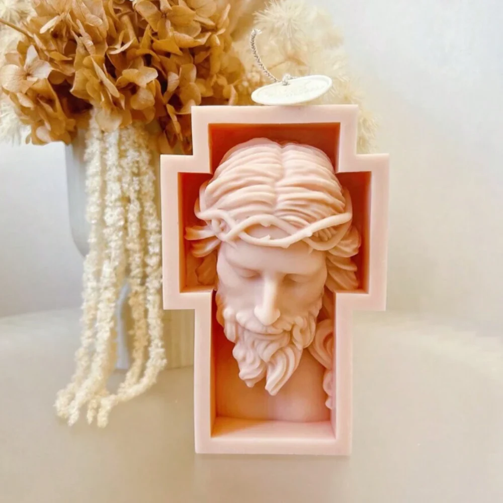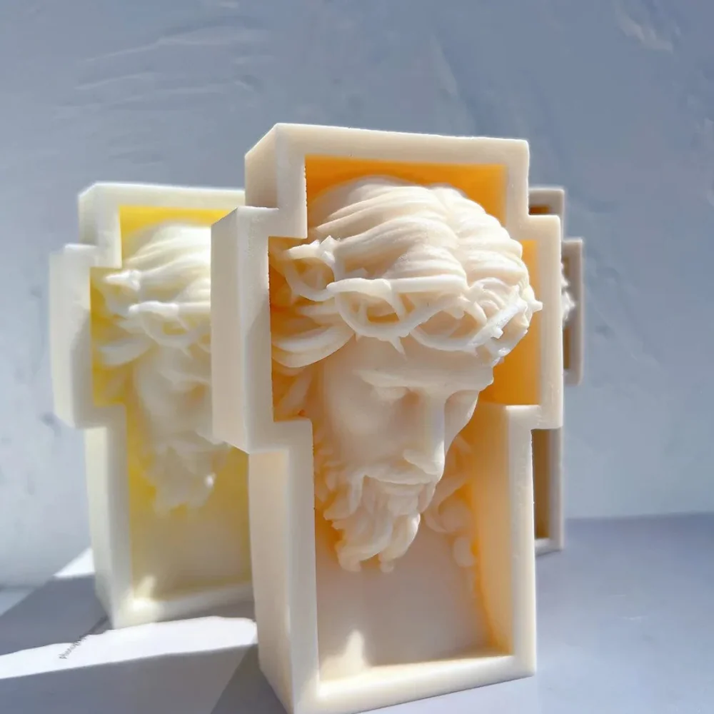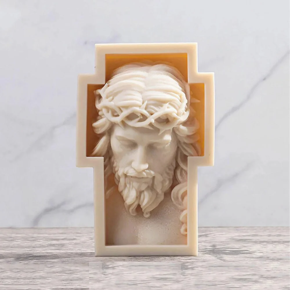 Diseño Detallado en 3D: El molde representa detalles increíbles en el rostro de Cristo con su corona de espinas en la cruz, detalles que añaden un toque de reverencia y sofisticación a tus creaciones.
