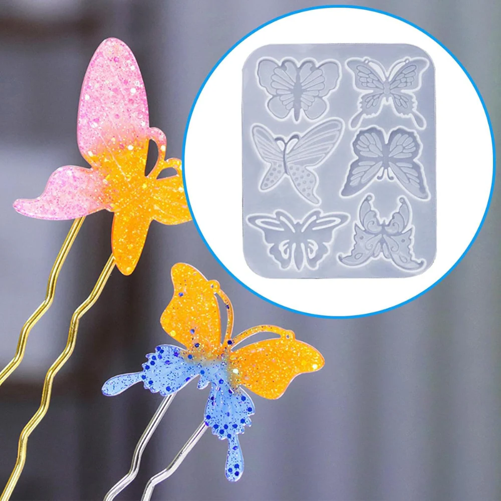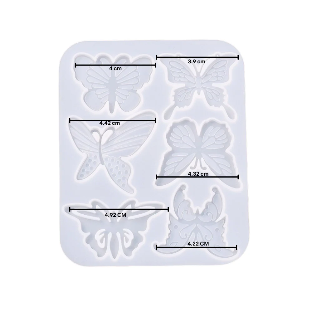 Molde de silicón para aretes o colgantes en forma de diversas mariposas.