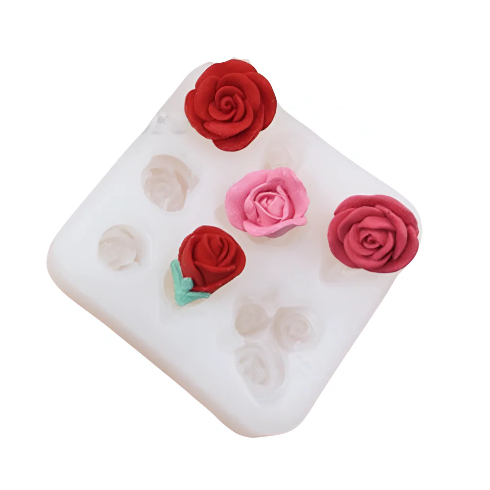 Diseño Detallado de Rosas: El molde contiene 7 hermosas rosas en relieve, con detalles finos que simulan una flor realista, perfectas para decorar velas, pasteles, cupcakes, y más.
