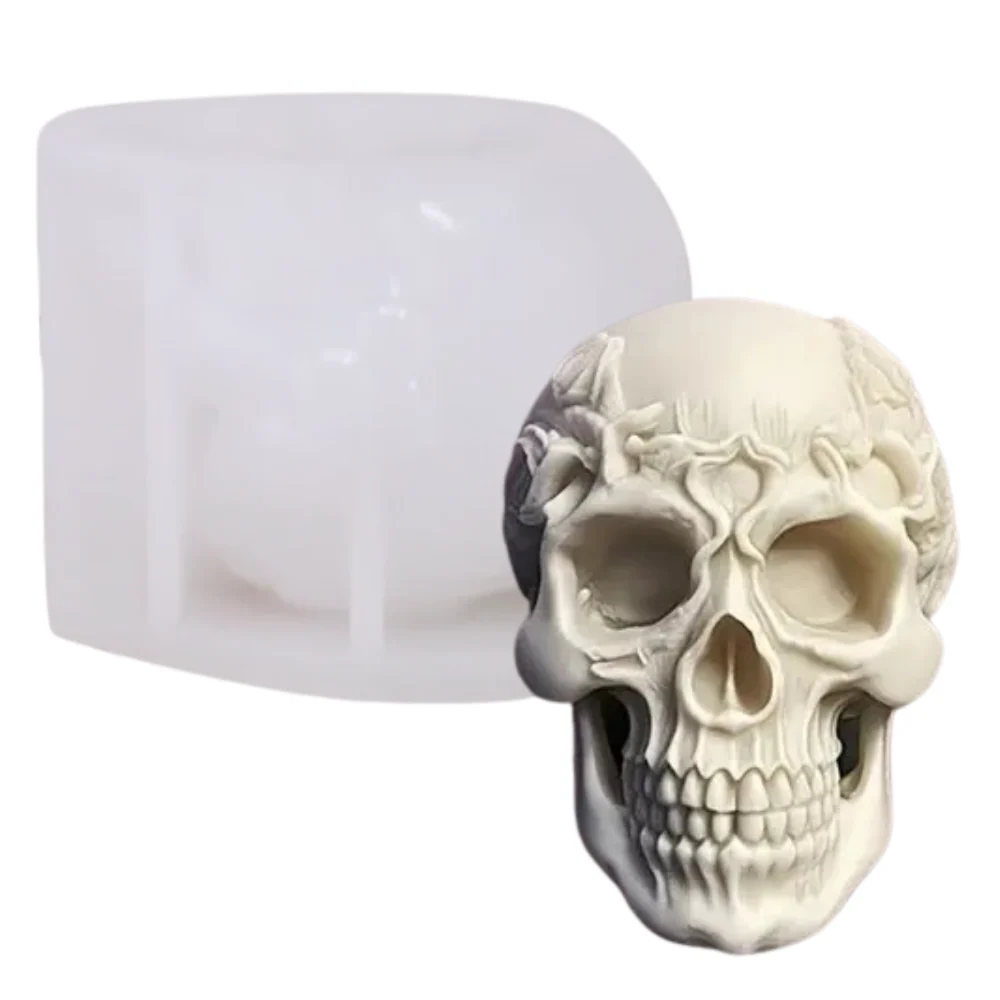 Molde de Cráneo 3D con Flores y Raíces para Vela.