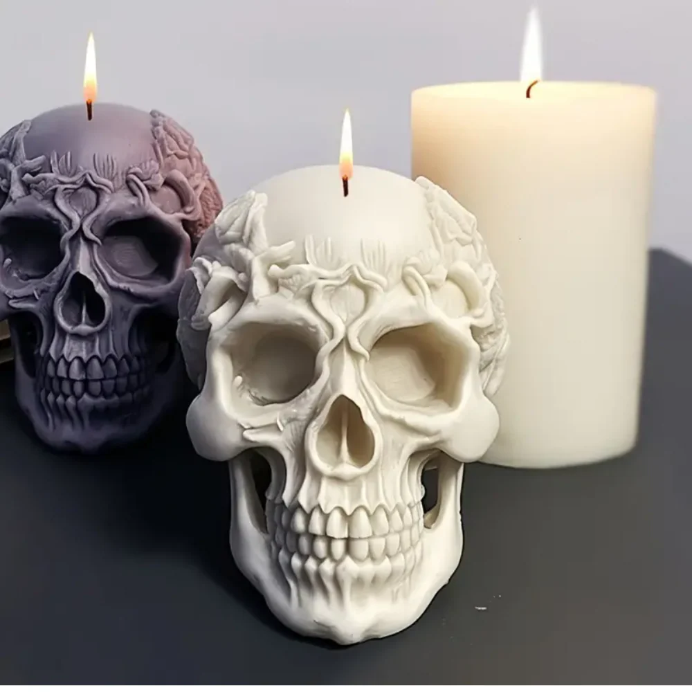 Descubre la creatividad en su máxima expresión con nuestro Molde de Cráneo 3D con Flores y Raíces para Vela, diseñado especialmente para los amantes de la artesanía y la decoración.