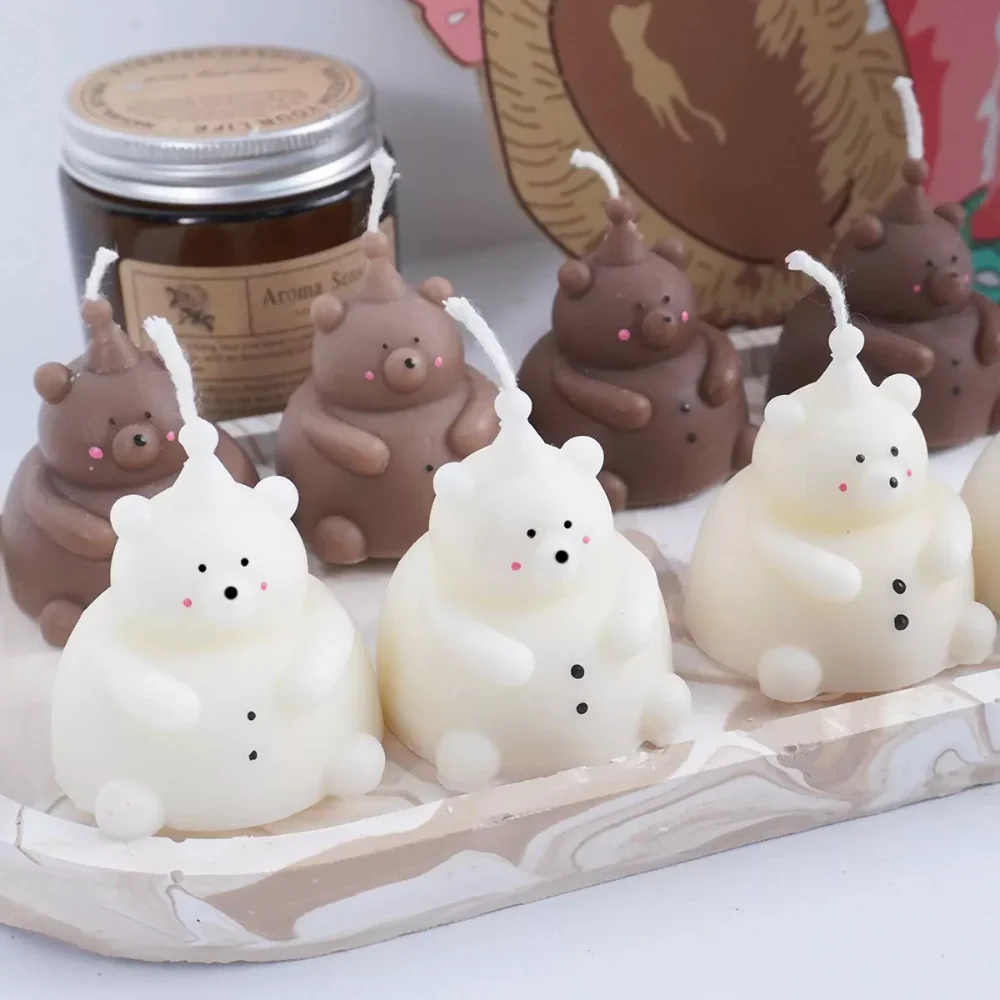 Molde de silicón de oso con sombrerito de cumpleaños.
