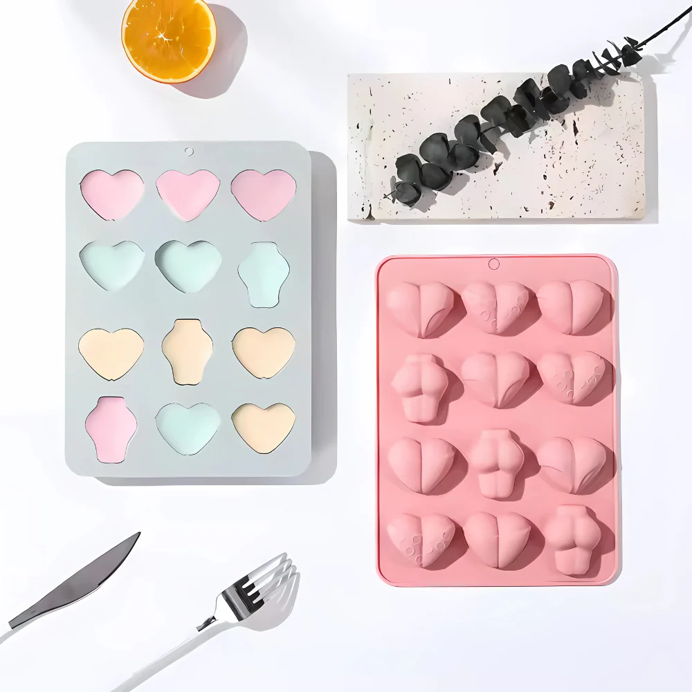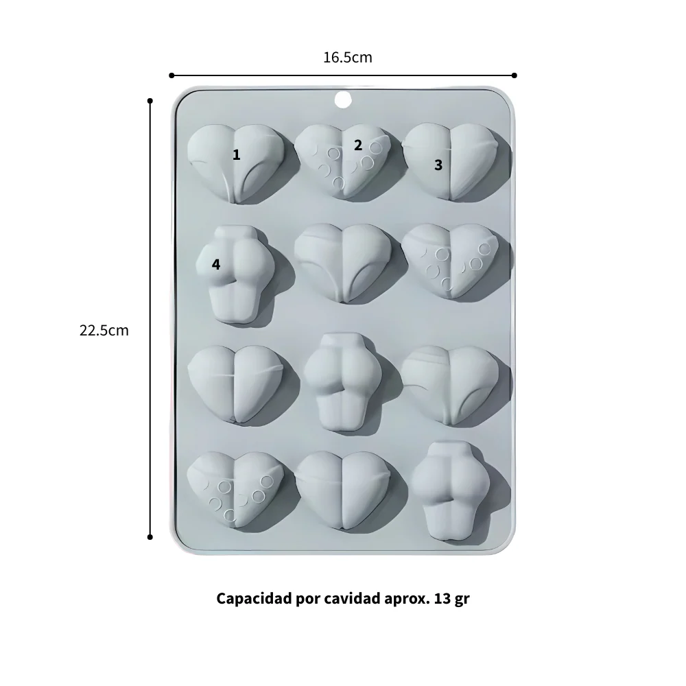Molde para repostería 12 cavidades, 4 coquetos diseños.