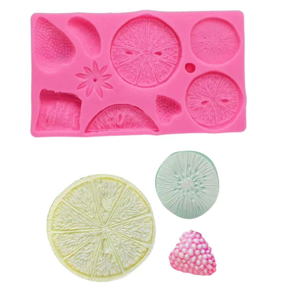 Nuestro molde incluye una variedad de frutas tropicales deshidratadas, como kiwi, fresa, mandarina, naranja y más, que añaden un toque de color y exotismo a tus creaciones.