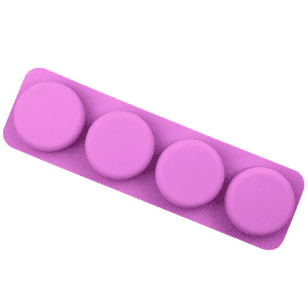 Con cuatro cavidades lisas y de buen tamaño, este molde te permite producir jabones circulares perfectos.