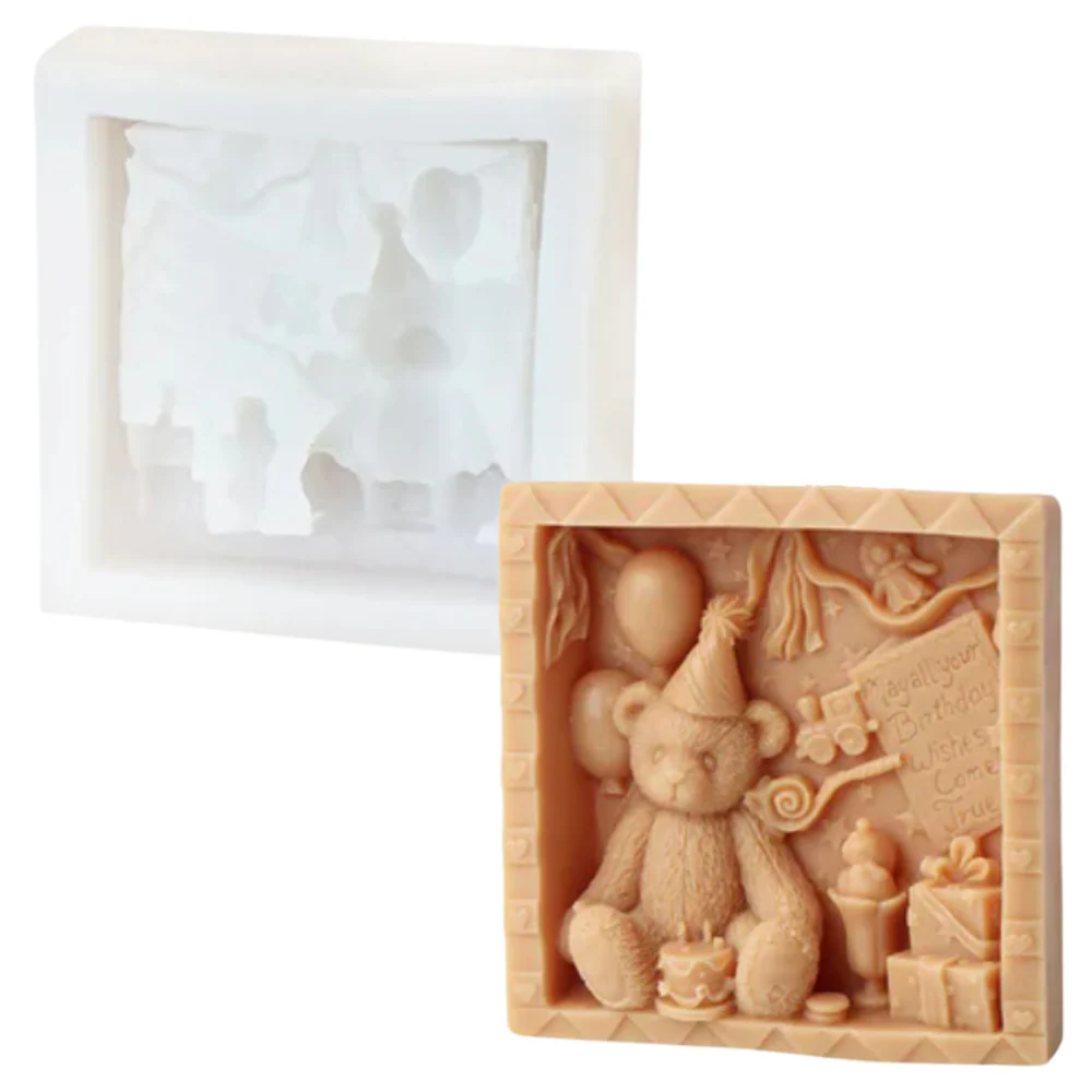 Este molde encantador es perfecto para crear recuerdos inolvidables y decoraciones únicas para tus fiestas con un diseño adorable, presenta un marco de foto con un tierno oso y detalles festivos, ideal para cualquier fiesta de cumpleaños o celebración especial.