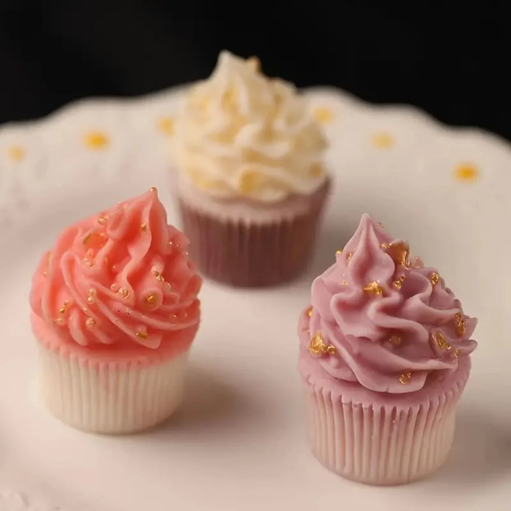 Bonito molde de silicona para elaborar velas en forma de cupcake con crema batida.