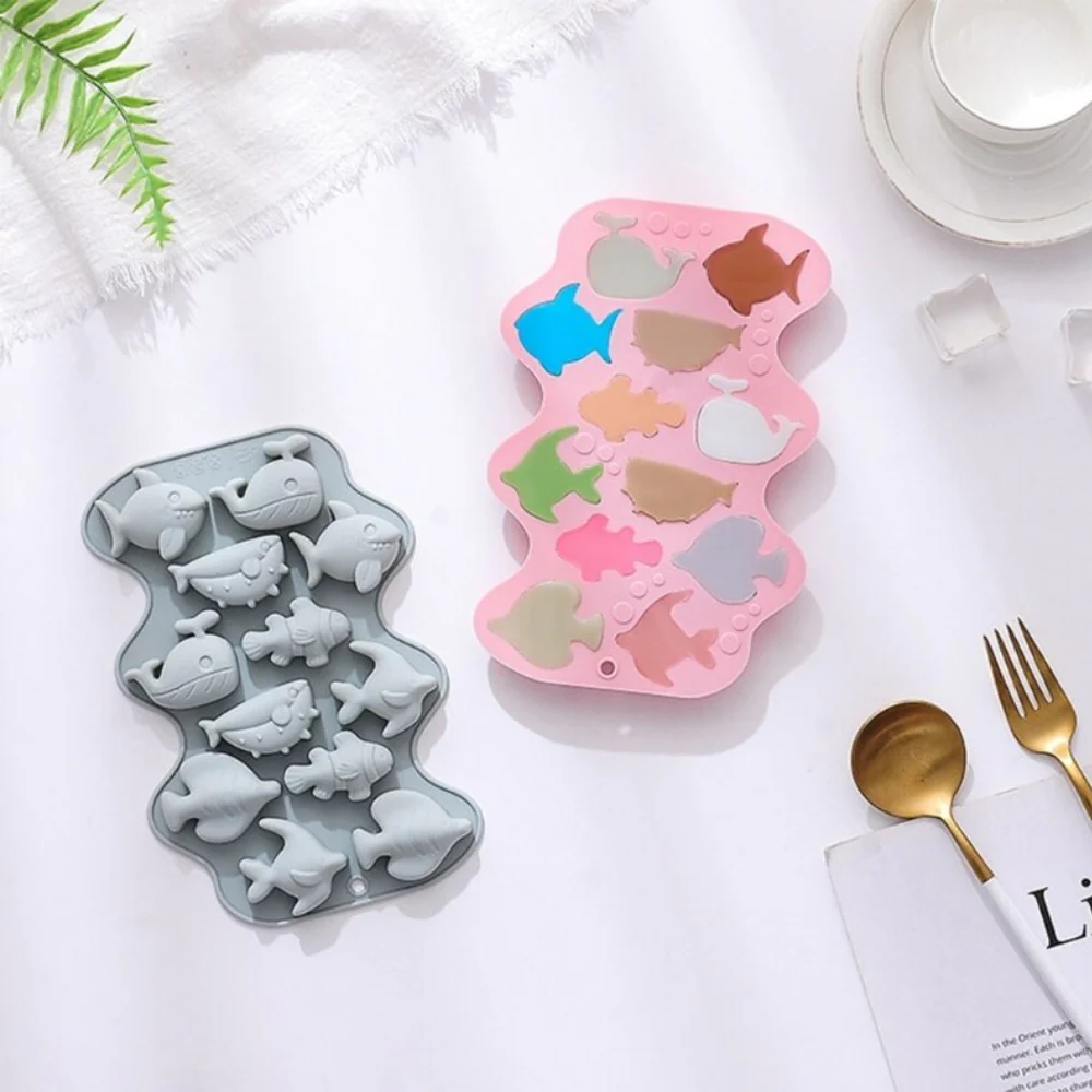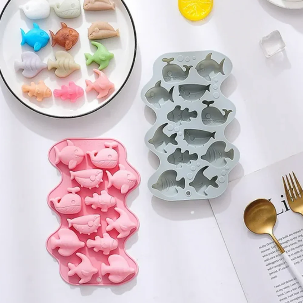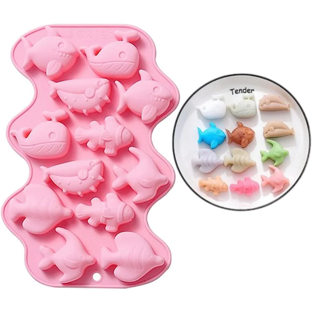 Molde de silicón de peces, 12 figuras marinas diferentes, tiburones y peces.